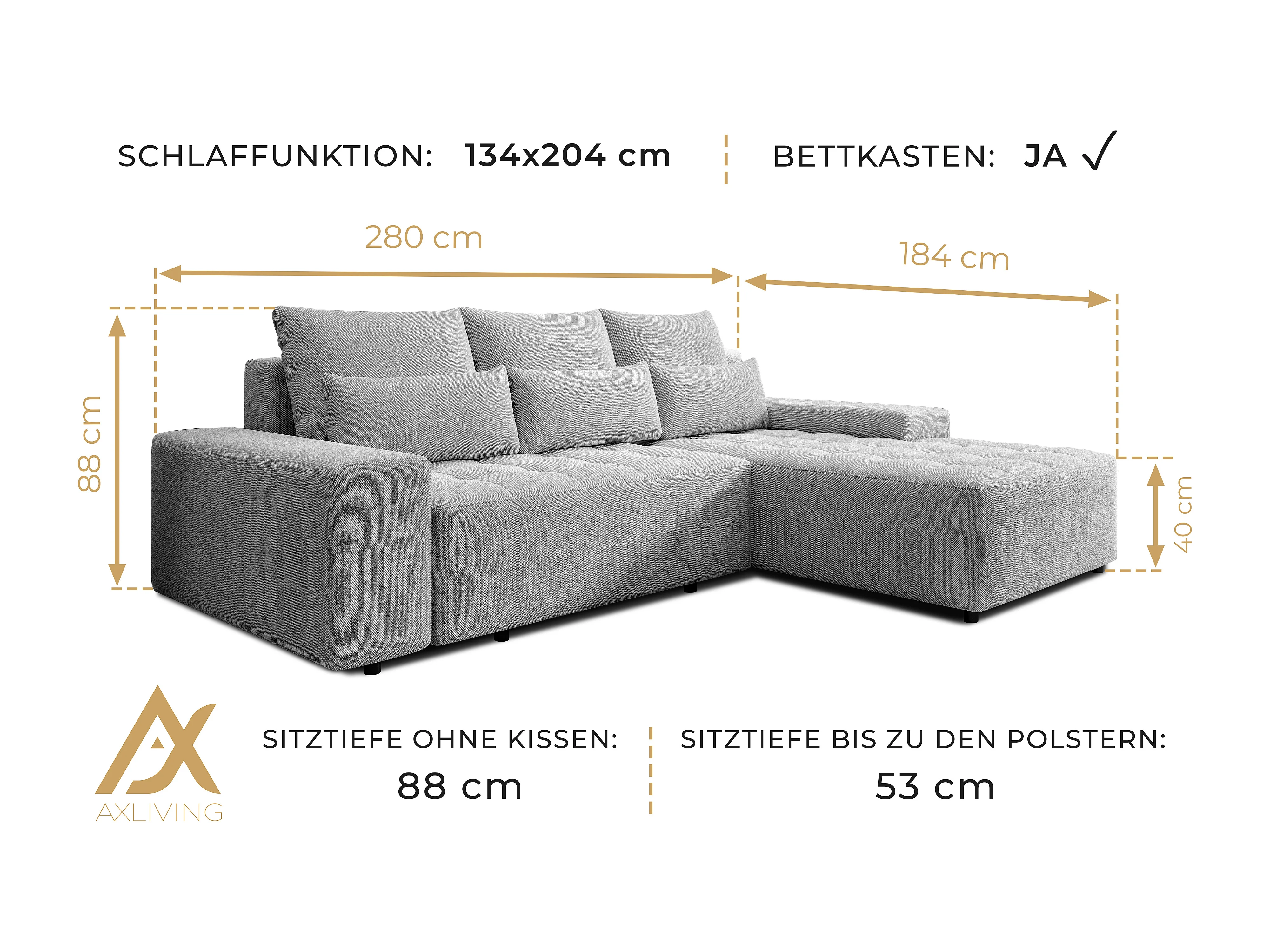 AX LIVING Hoekbank Alvorada 280 cm zwart met slaapfunctie
