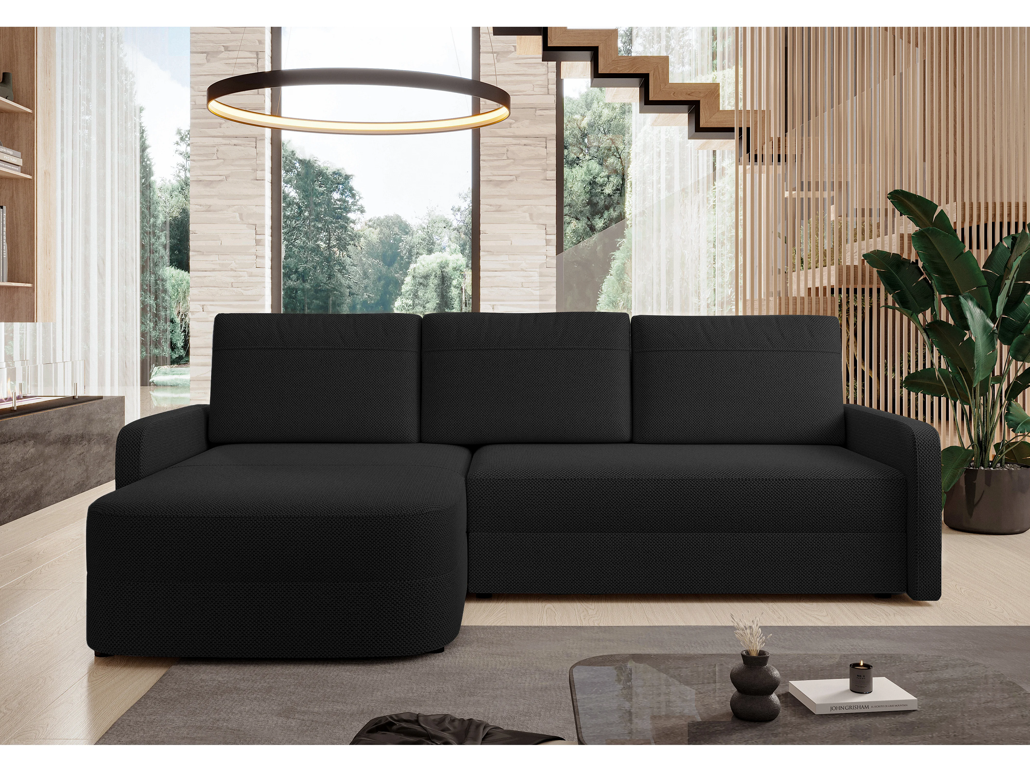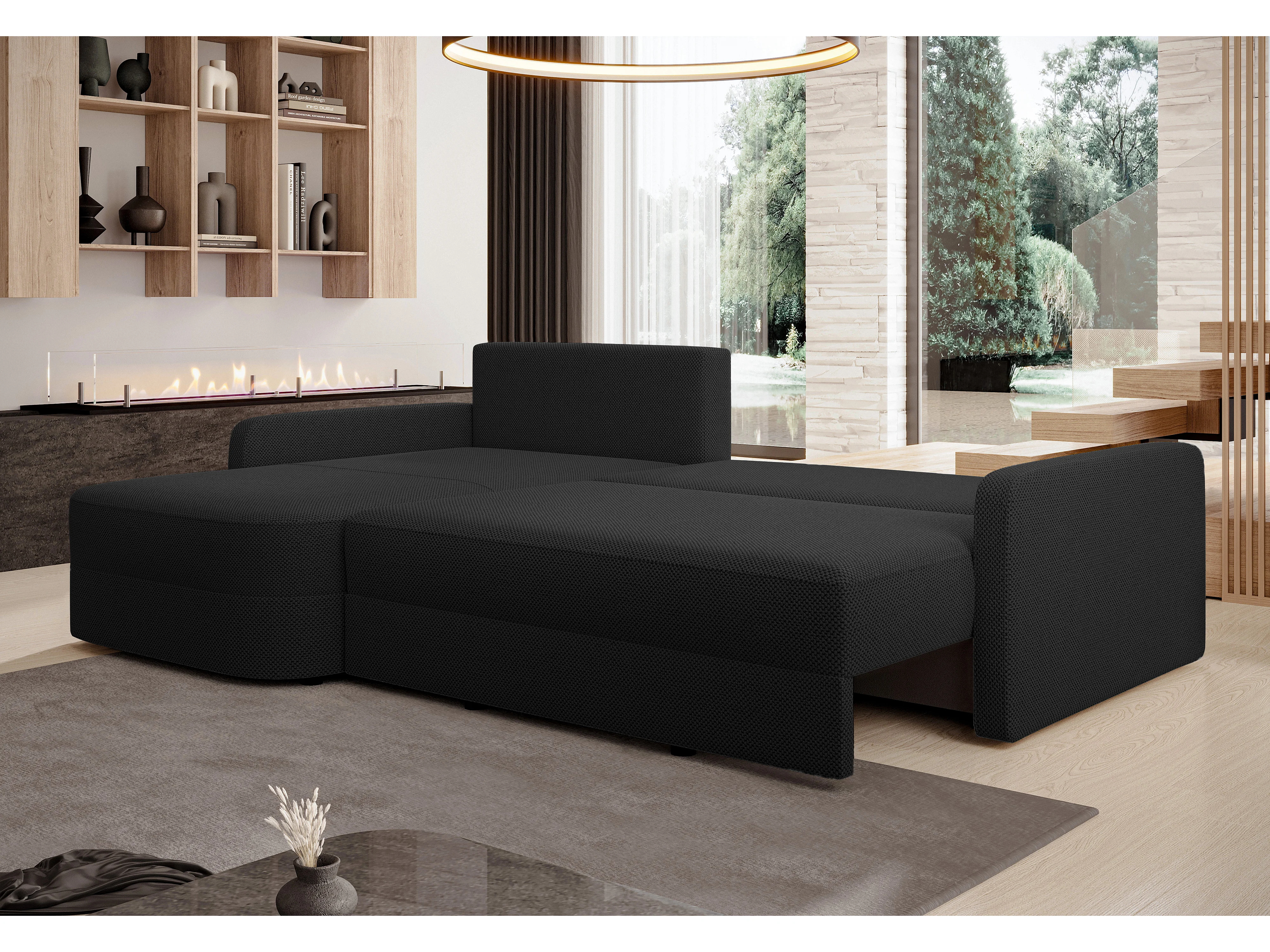 AX LIVING Hoekbank Nebbiolo 250 cm zwart met slaapfunctie