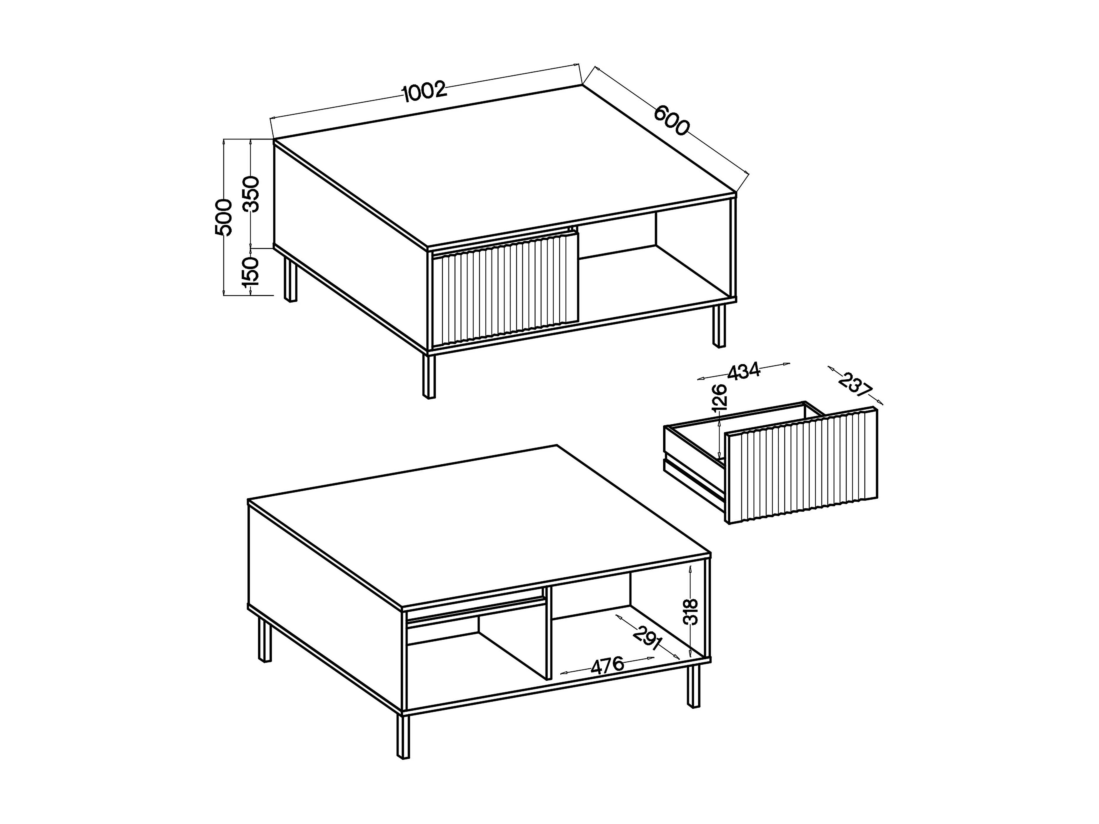 AX LIVING Salontafel BODRUM 2 lades 100 cm zandbeige