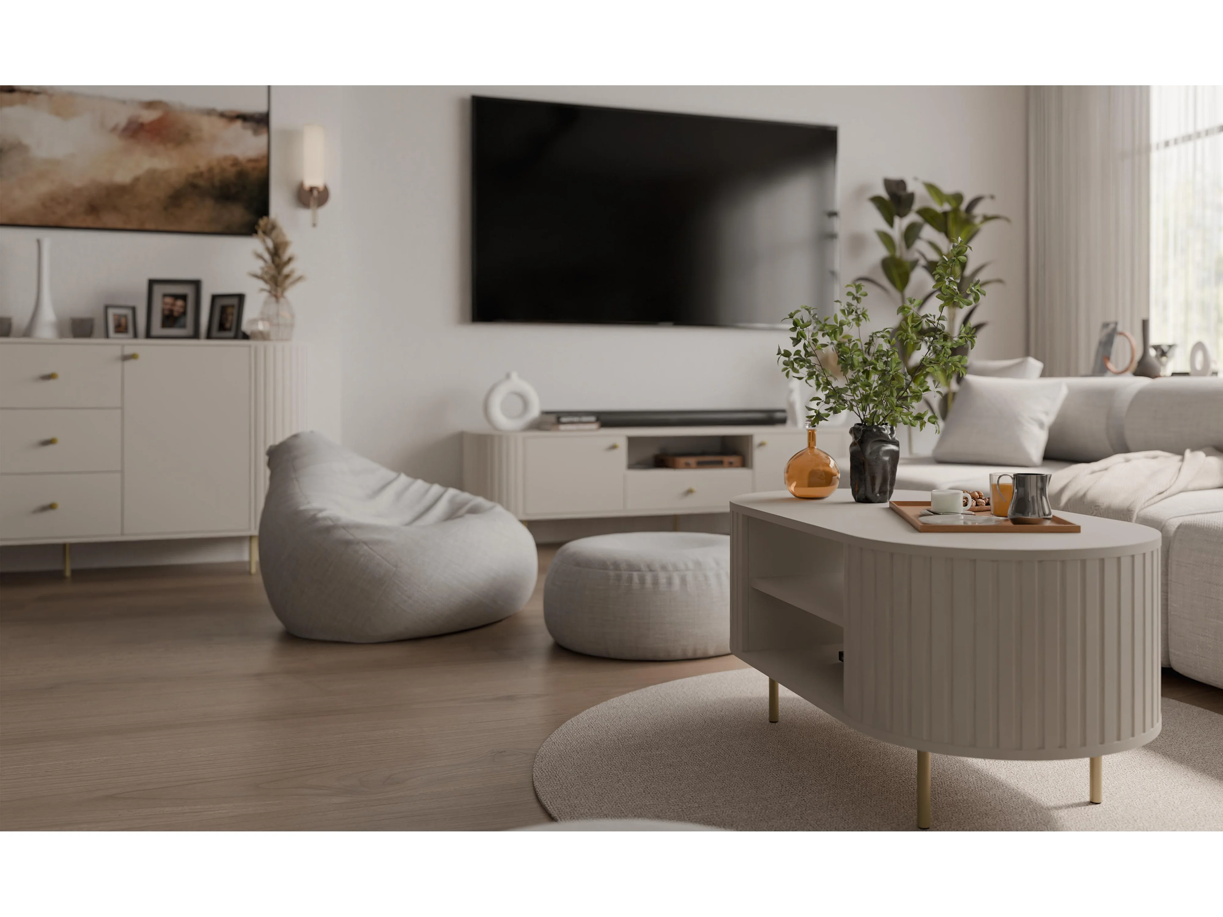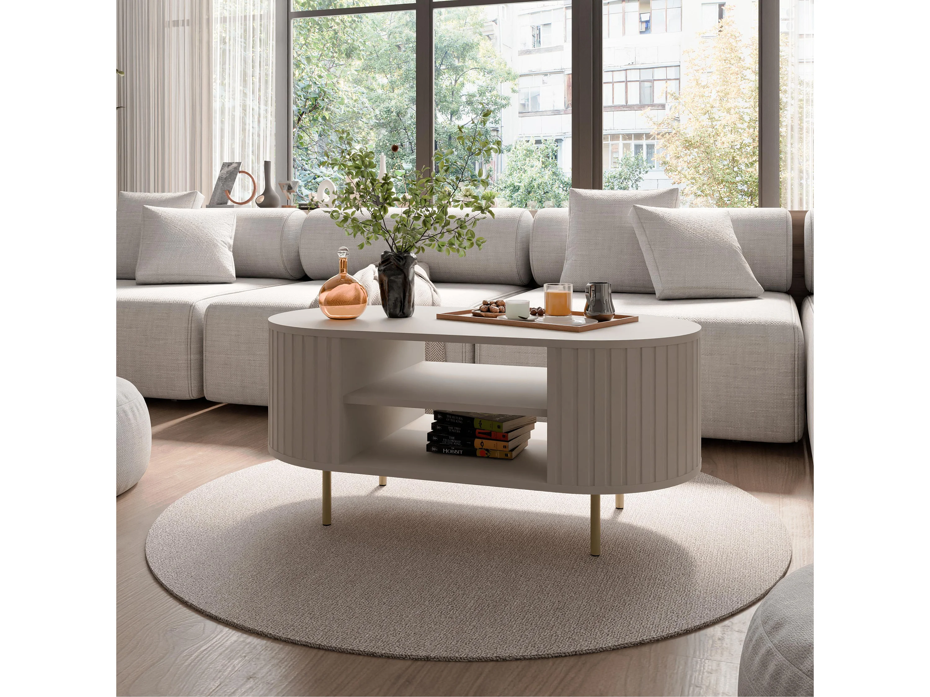 AX LIVING Salontafel Halay beige ribbelstructuur 100 cm ronde randen