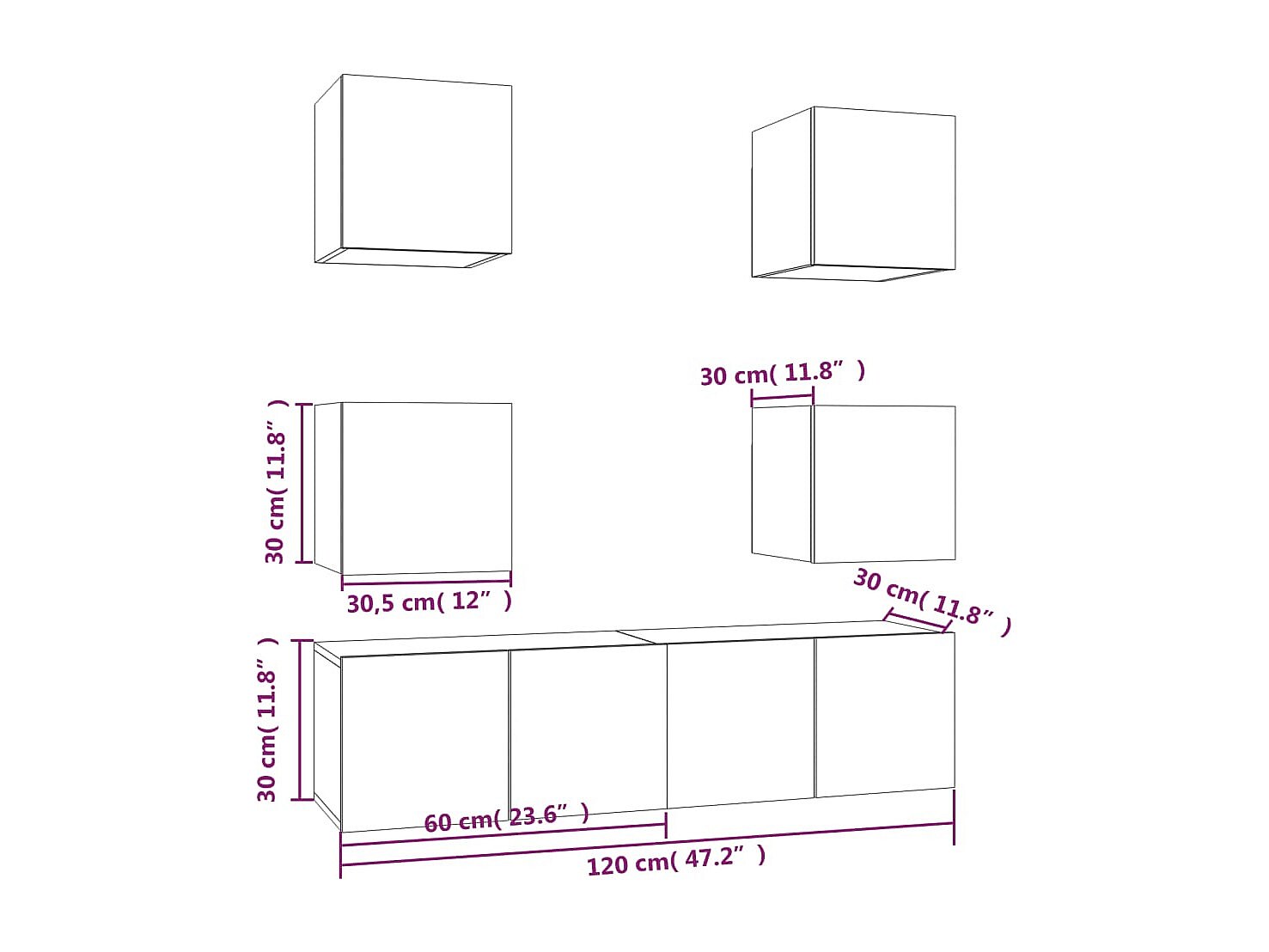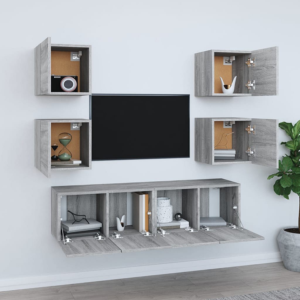 Azra 6-delige Tv-meubelset bewerkt hout grijs sonoma eikenkleurig