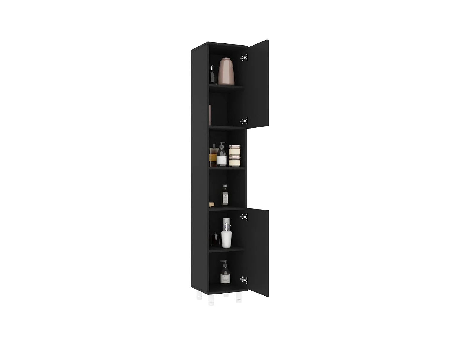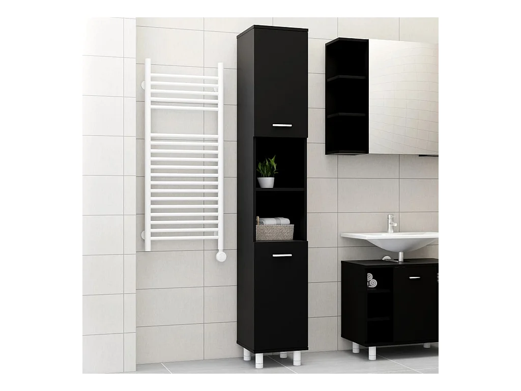 Badkamerkast 30x30x179 cm spaanplaat zwart BE595071