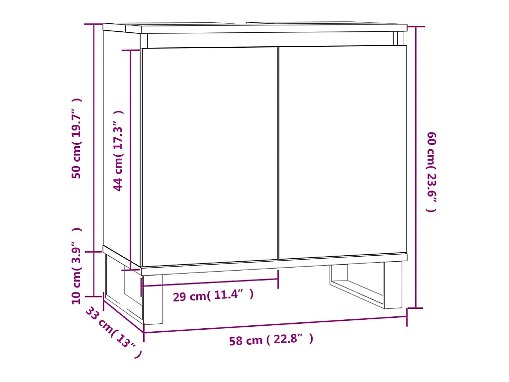 Badkamerkast 58x33x60 cm bewerkt hout wit