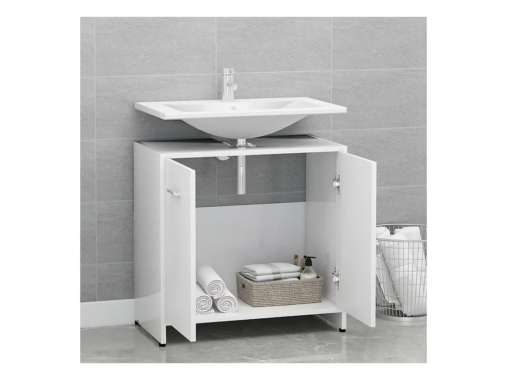 Badkamerkast 58x33x60 cm bewerkt hout hoogglans wit BE475872