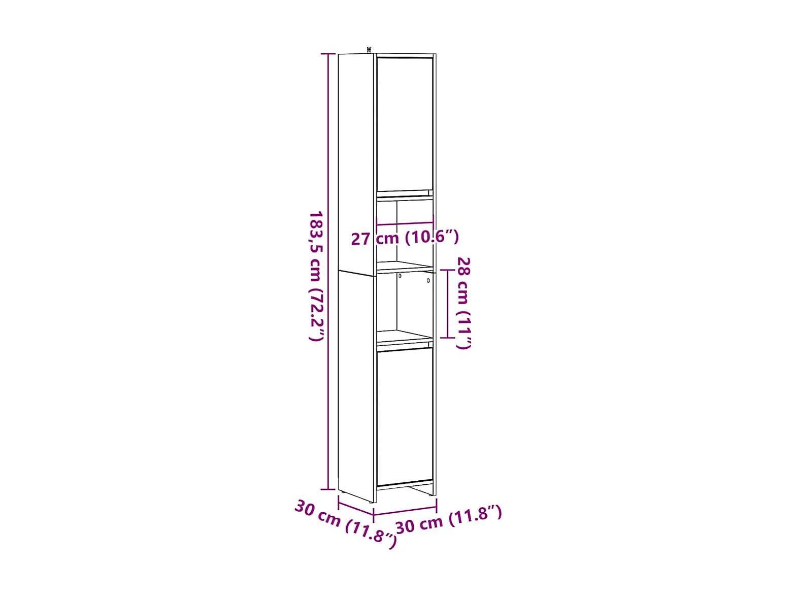 Badkamerkast in handgemaakt eikenhout 30x30x183,5 cm