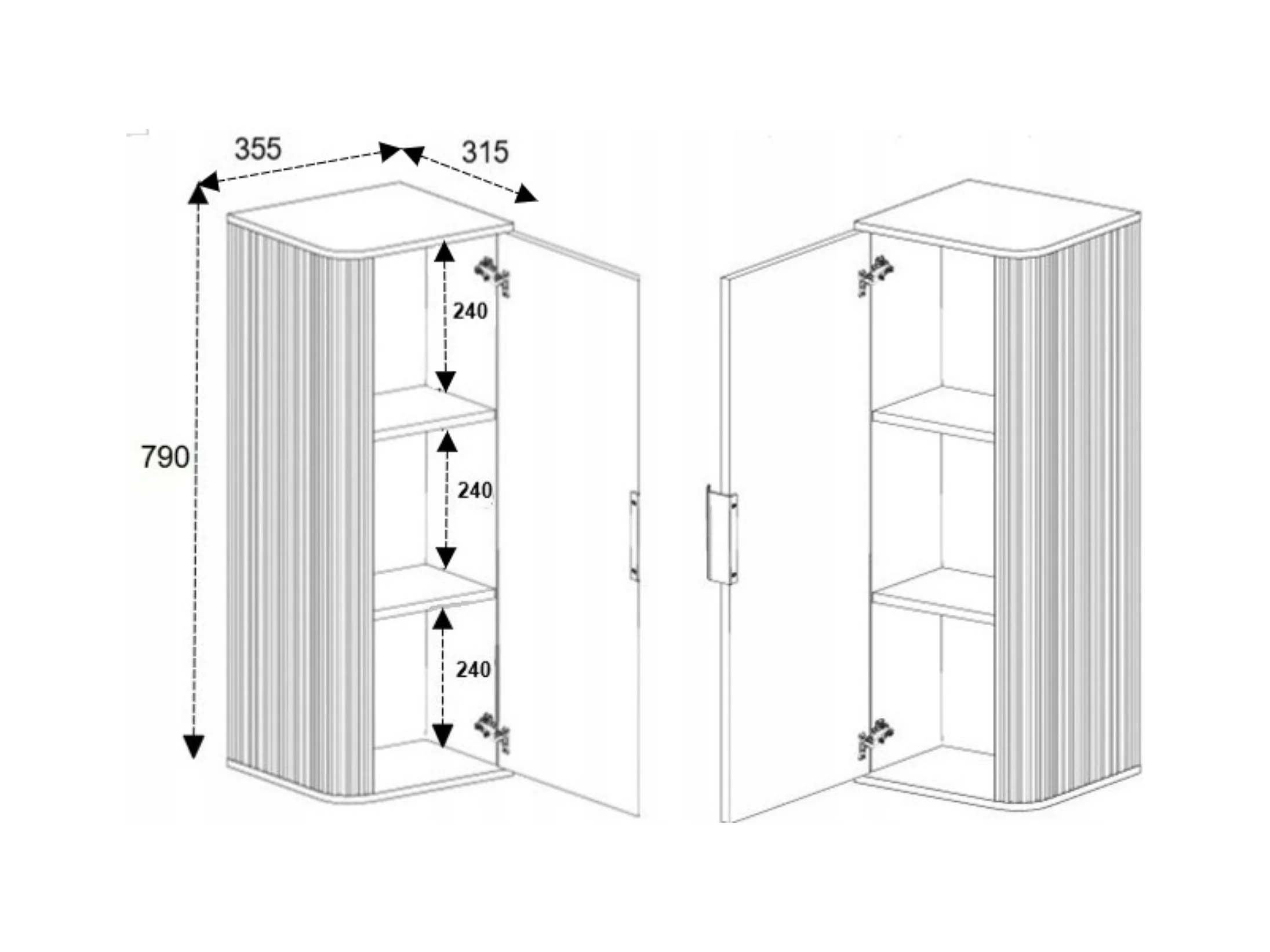 Badkamerkast, Kasjmier, zwarte handgreep, 80 (60 + 20) x 46 x 57 cm
