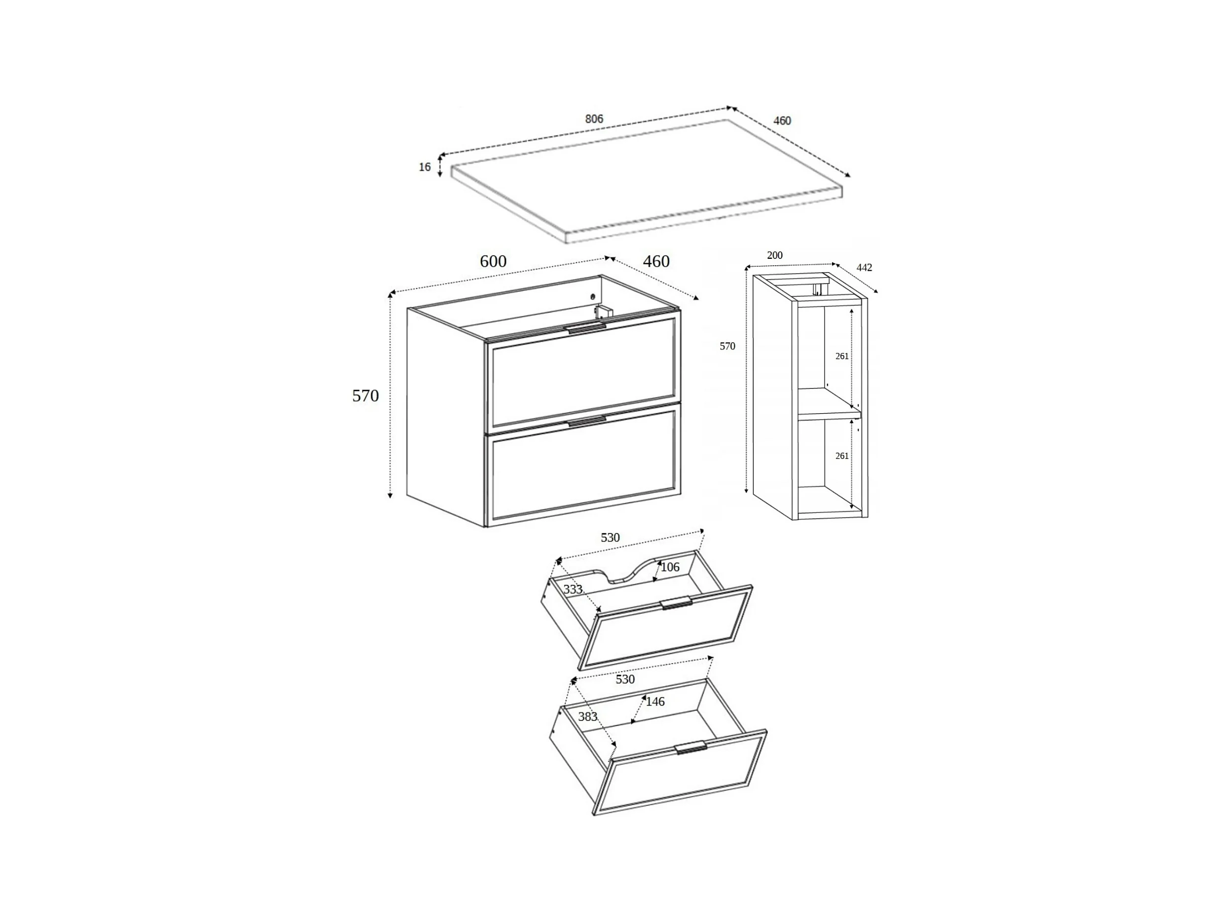 Badkamerkast, Kasjmier, zwarte handgreep, 80 (60 + 20) x 46 x 57 cm