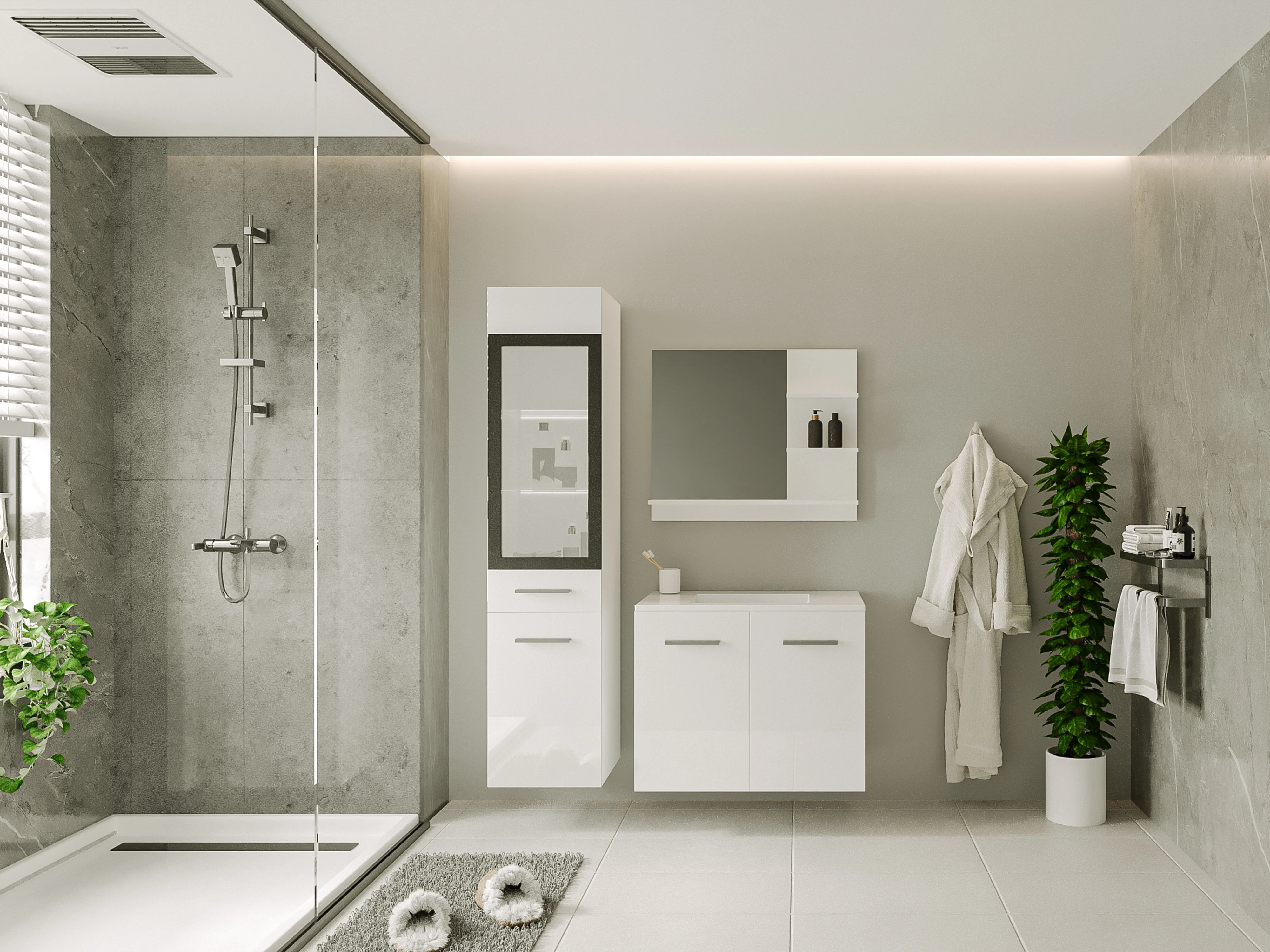 Kast Badkamer Hangend 80 cm Horizontaal Pawlacz Plank Wit Chroom