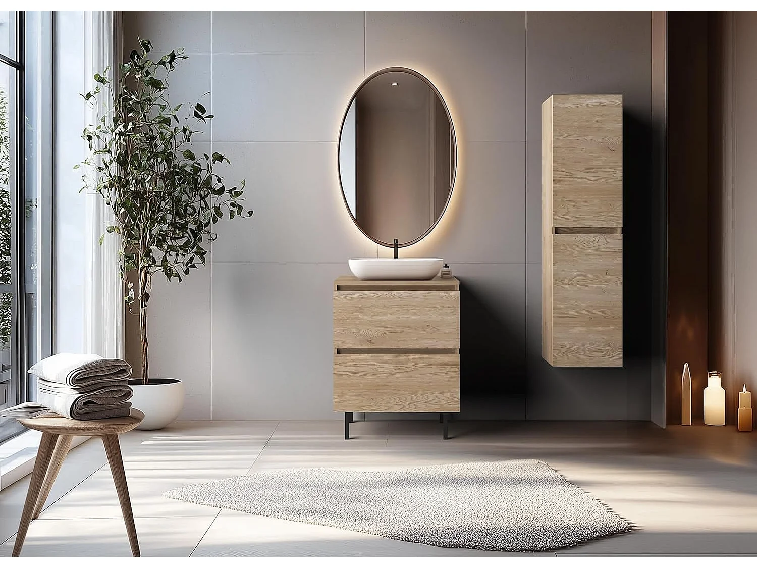 Badkamermeubel 60 cm, poten, Kleur: Licht eiken, 60 x 80,7 x 46 cm