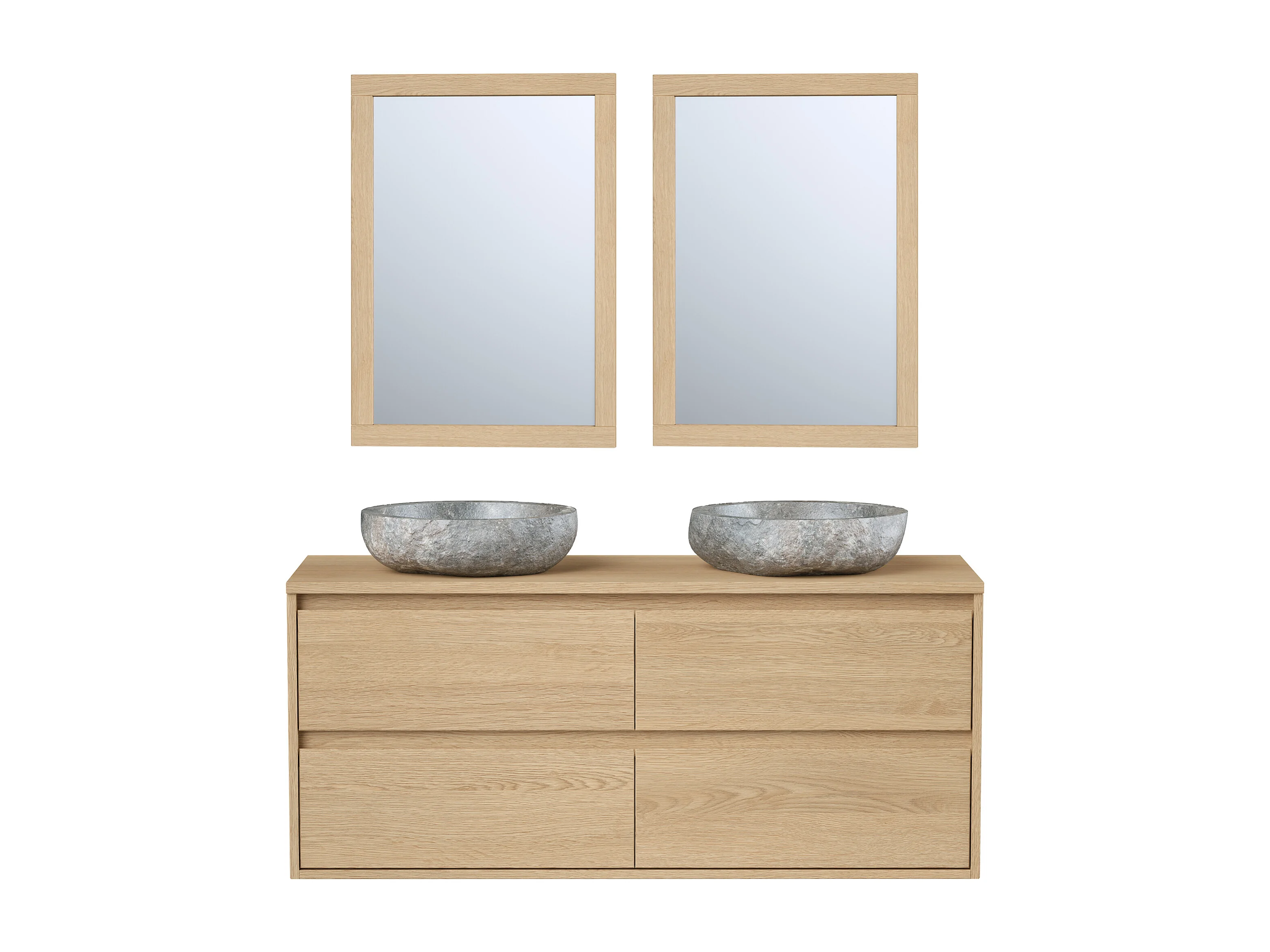 Badkamermeubel met dubbele wastafel van steen met spiegel - Eikenfineer - 120 cm - MILIPAM