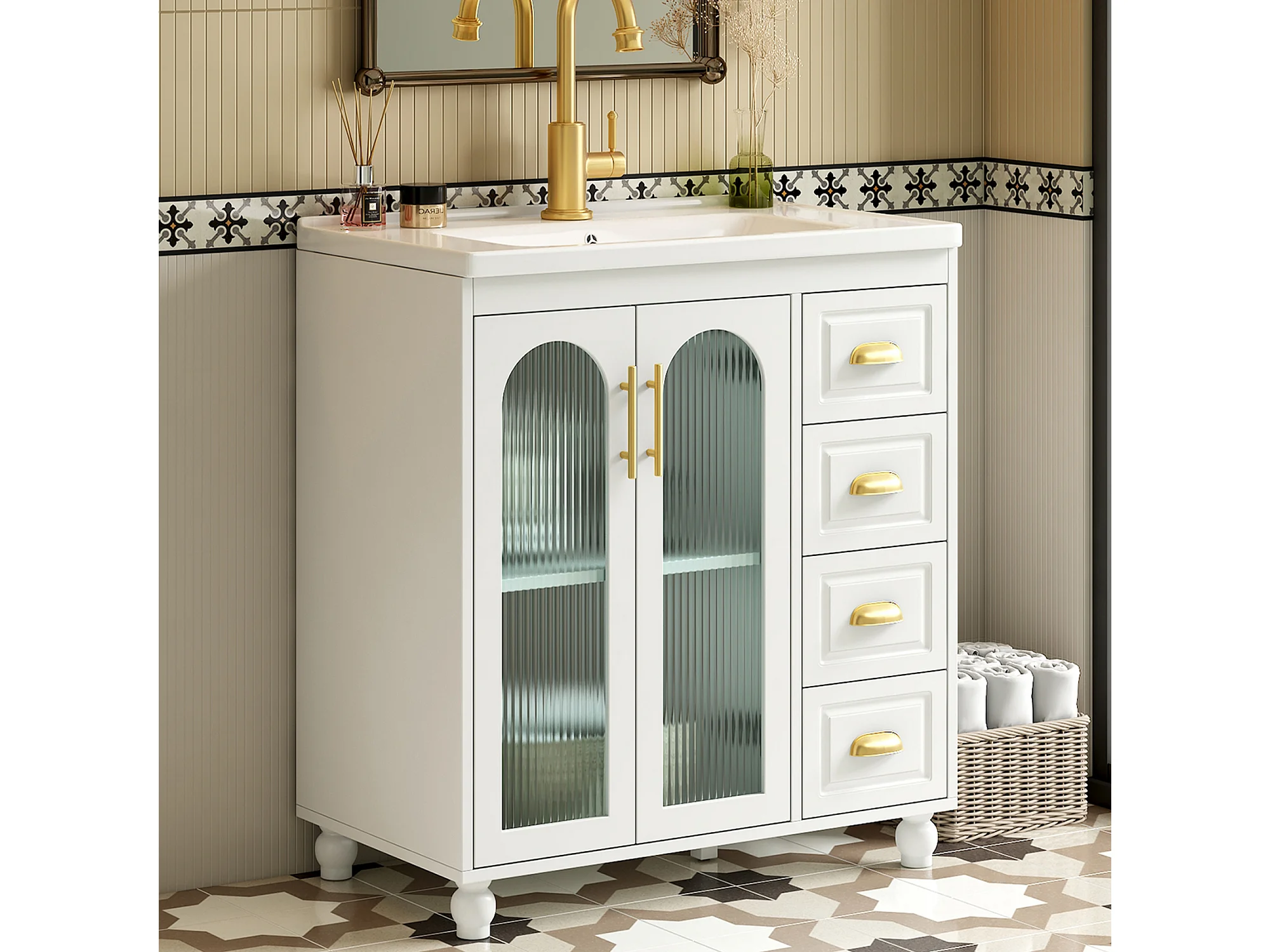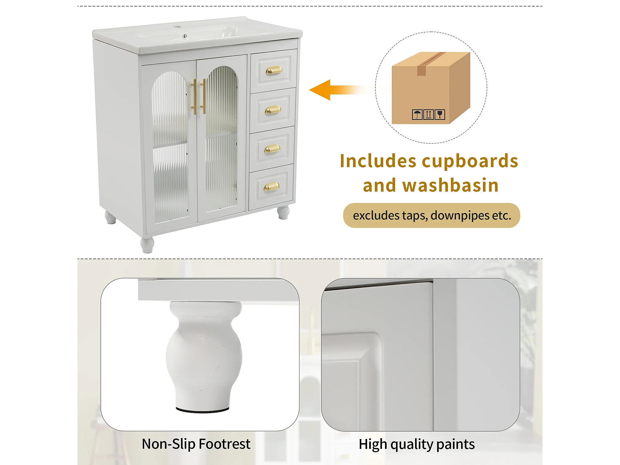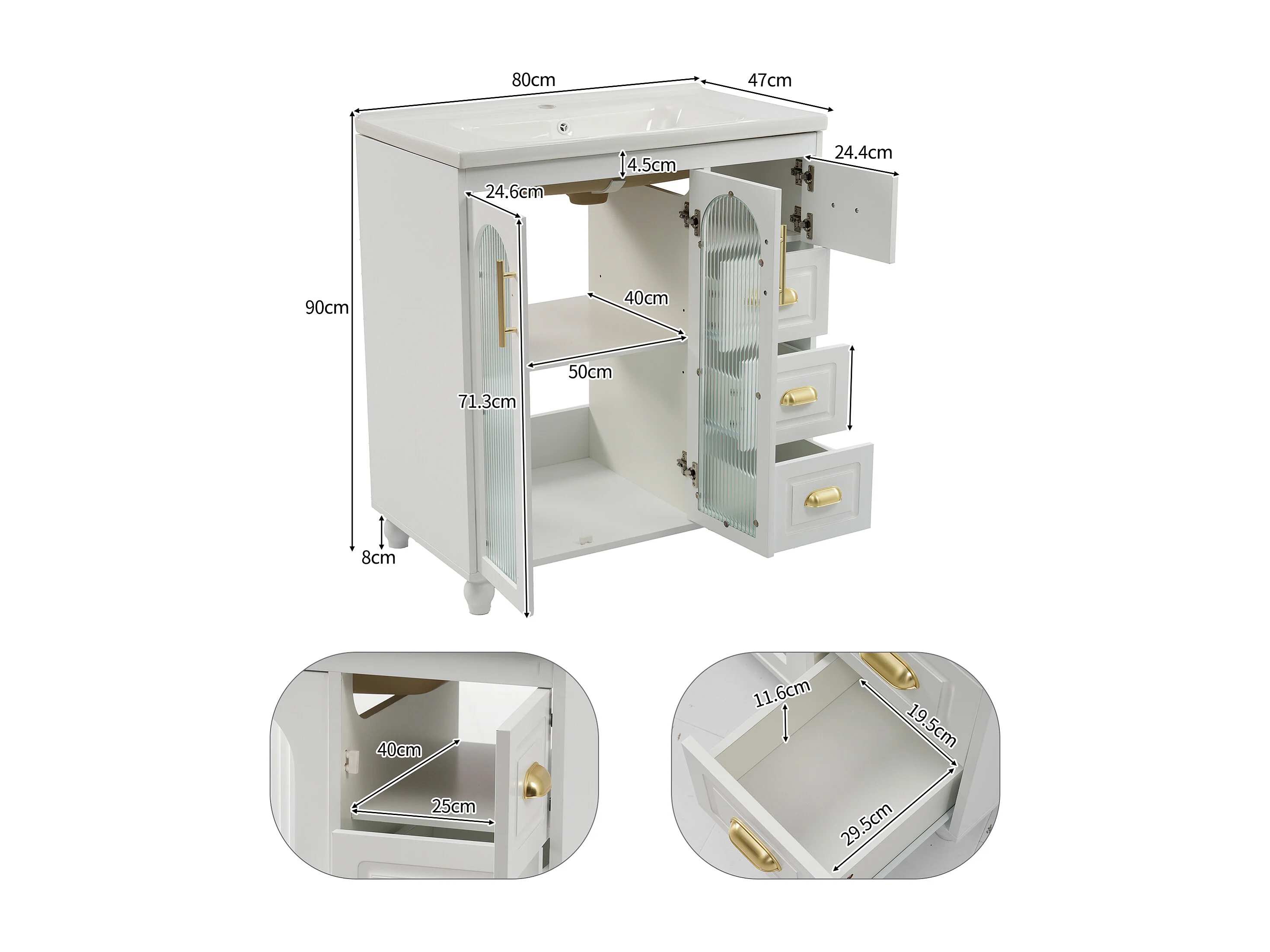 Badkamermeubel met keramische wastafel, 2 deuren, 3 laden, MDF, wit (80x47x90 cm)