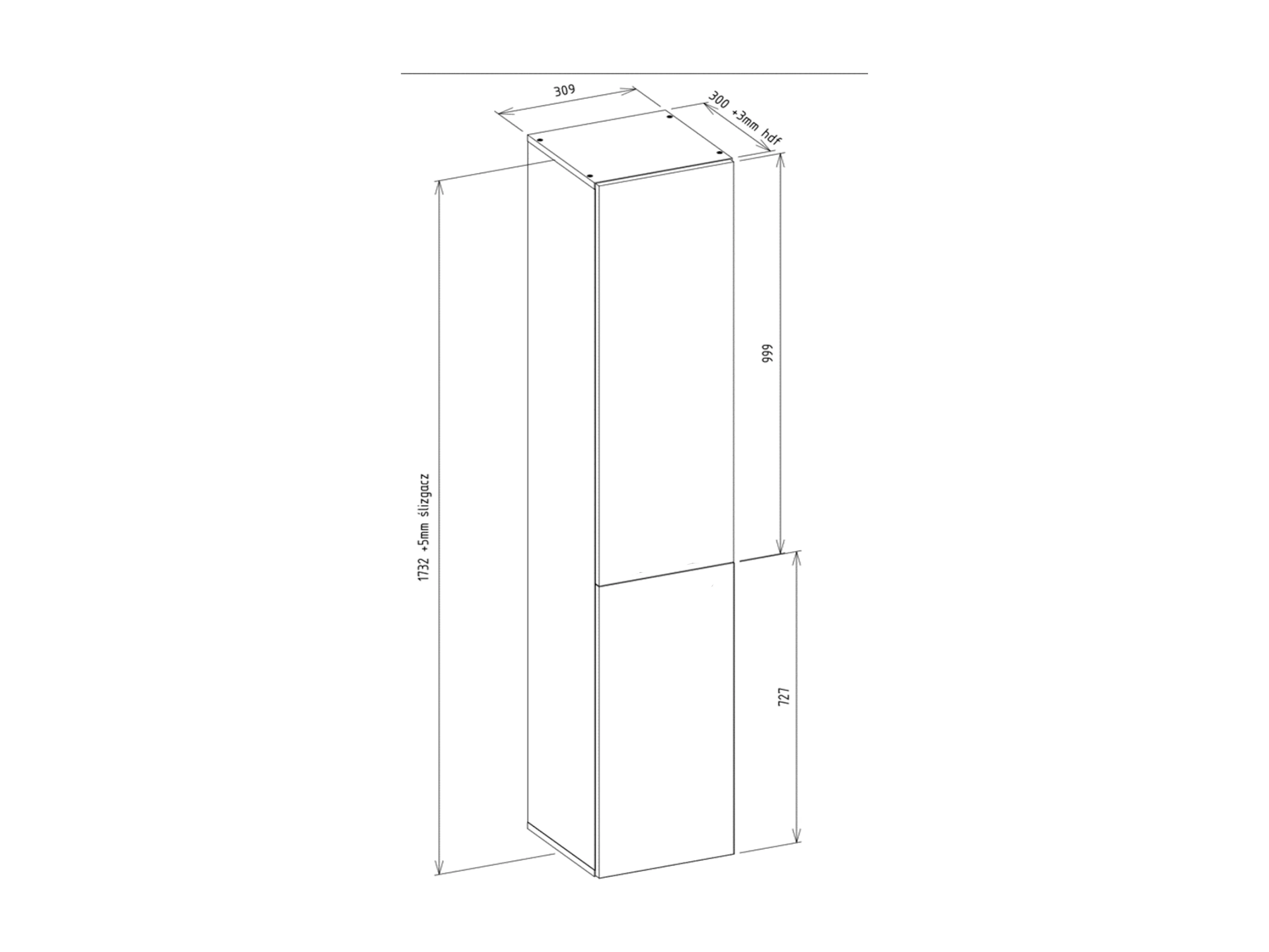 Badkamermeubel met wasmand: Cashmere, 174 x 31 x 30cm