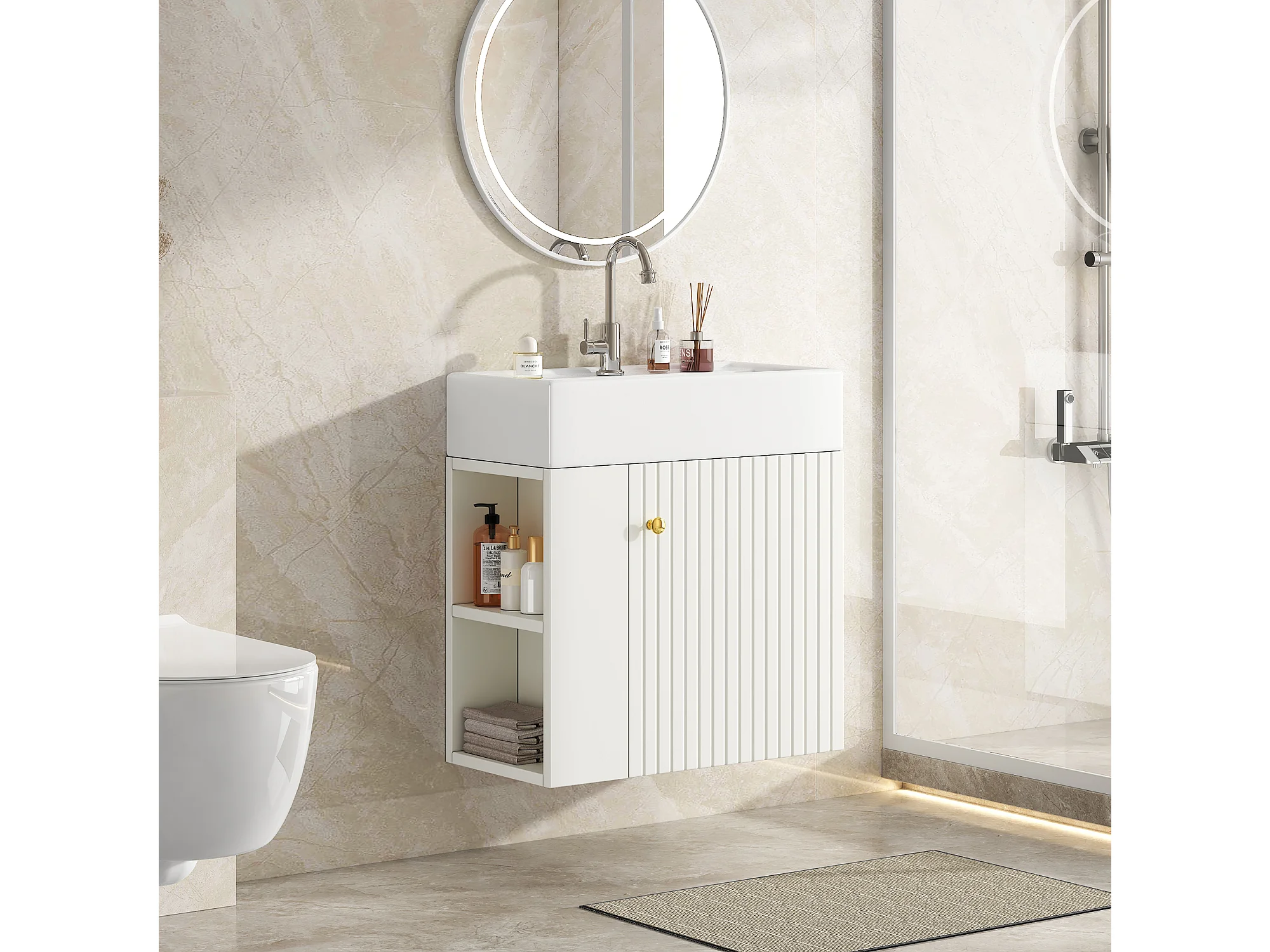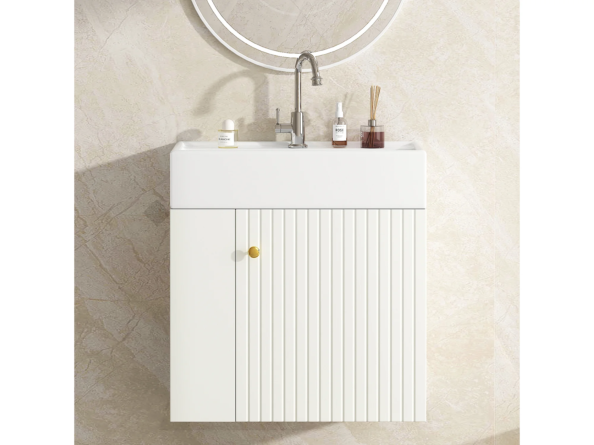 Badkamermeubel met wastafel en wandmeubel, wit, compact, voor kleine badkamers (55x31x66,5 cm)