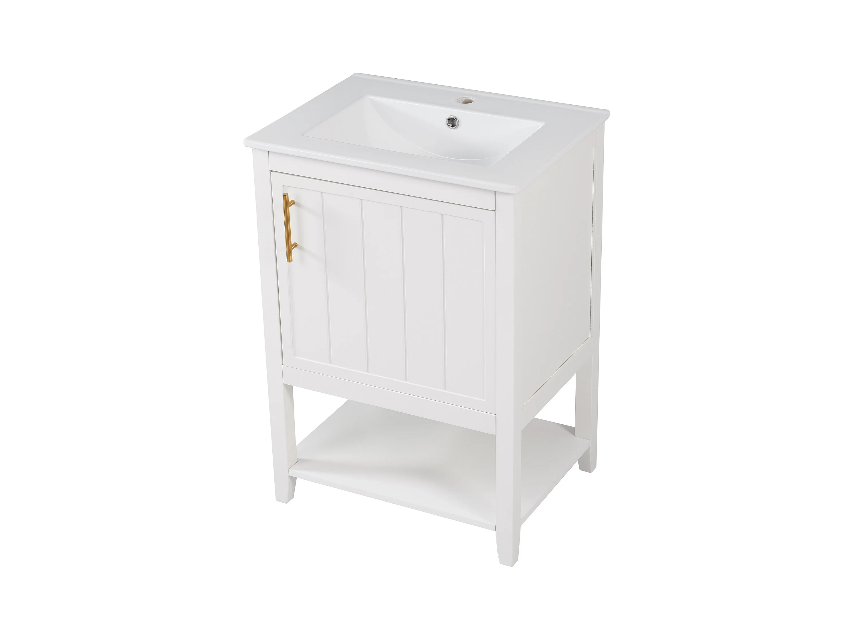 Badkamermeubel, modern design met keramische wastafel, MDF, wit, met planchet (61x47x87 cm)
