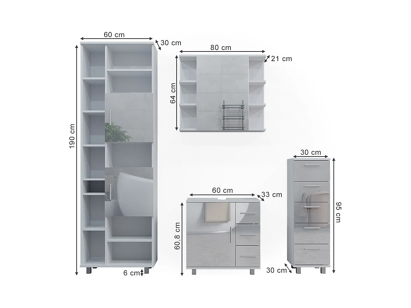 Badkamermeubel set wit hoogglans 60x33x60 ilias