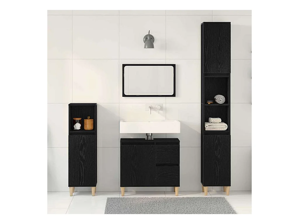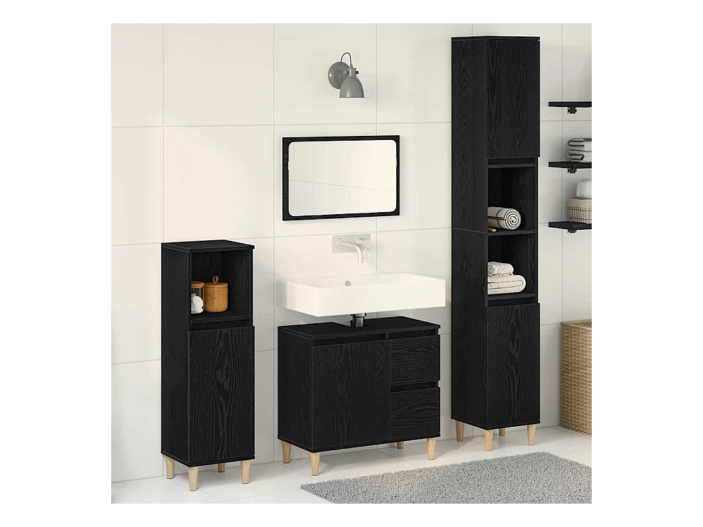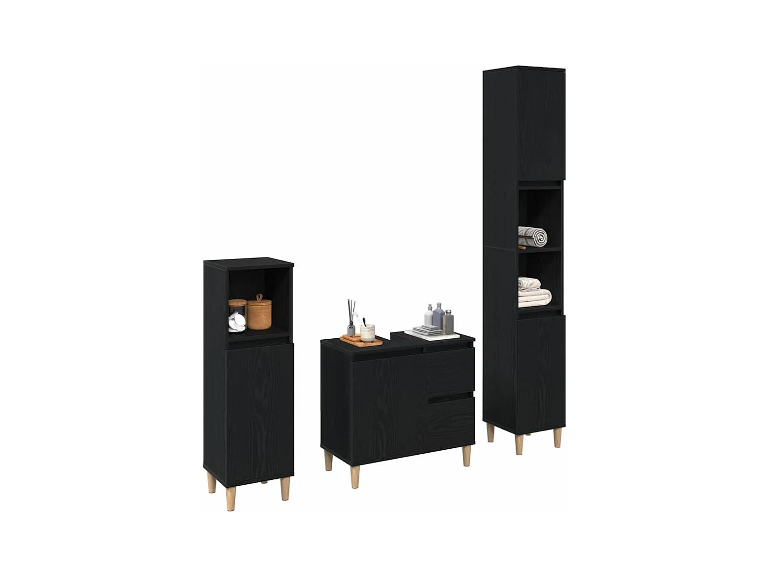 Badkamermeubelset met opbergruimte 3-delig Zwart Eiken