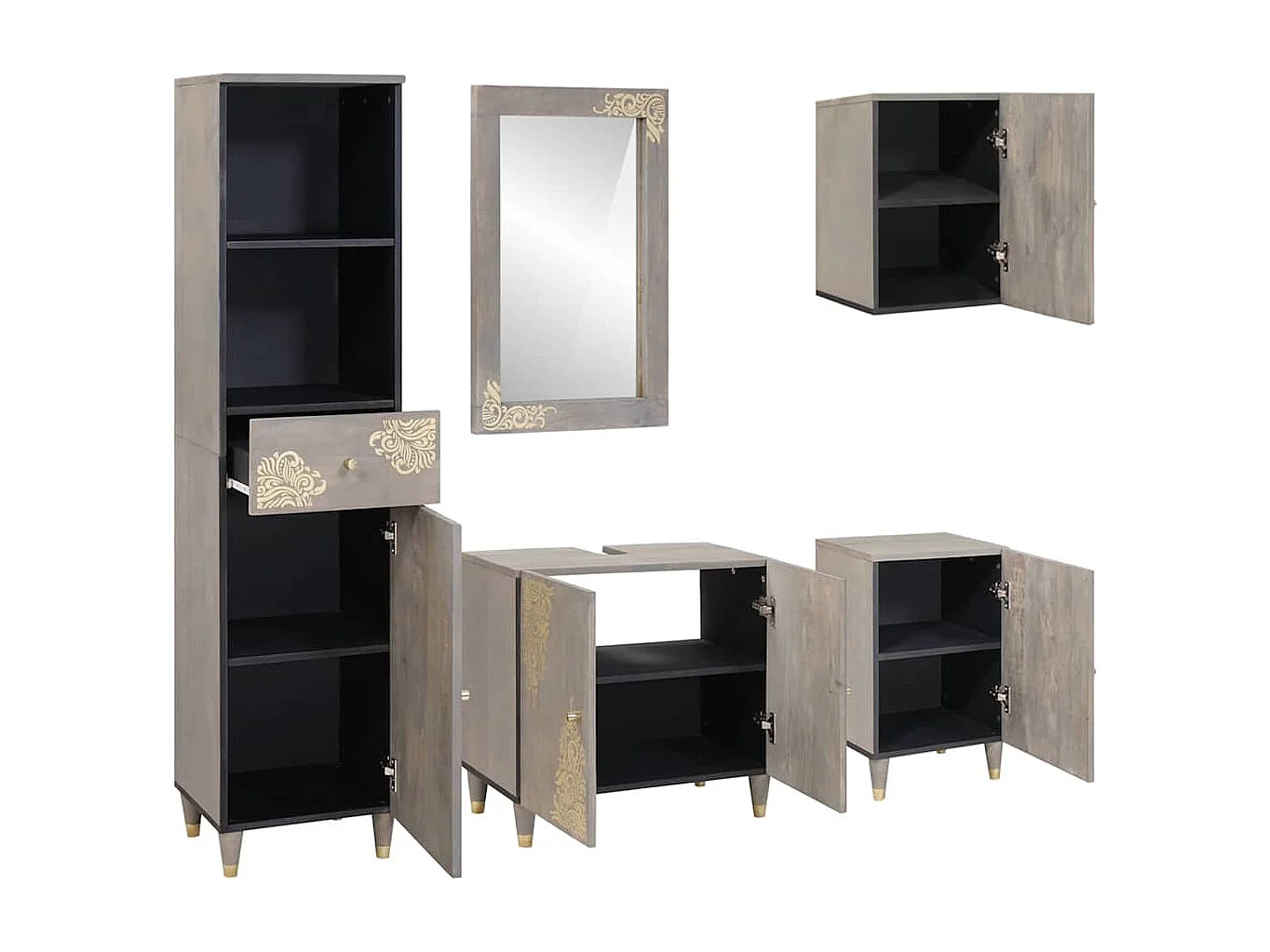 Badkamermeubelset met lade 5-delig grijs
