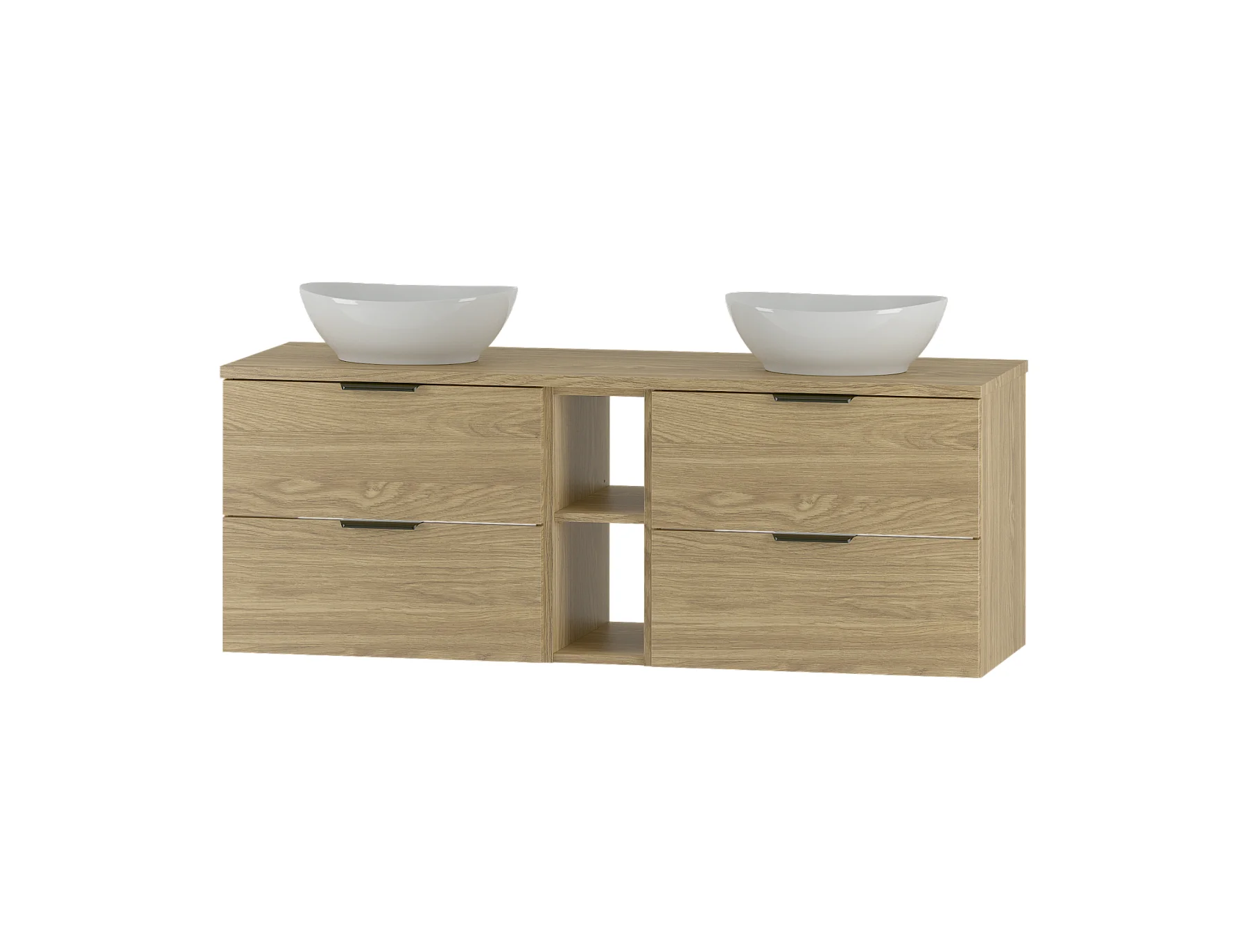Badkamerset 140 cm Kast Rek Werkblad Wastafel Eikenhout Geolied Pile