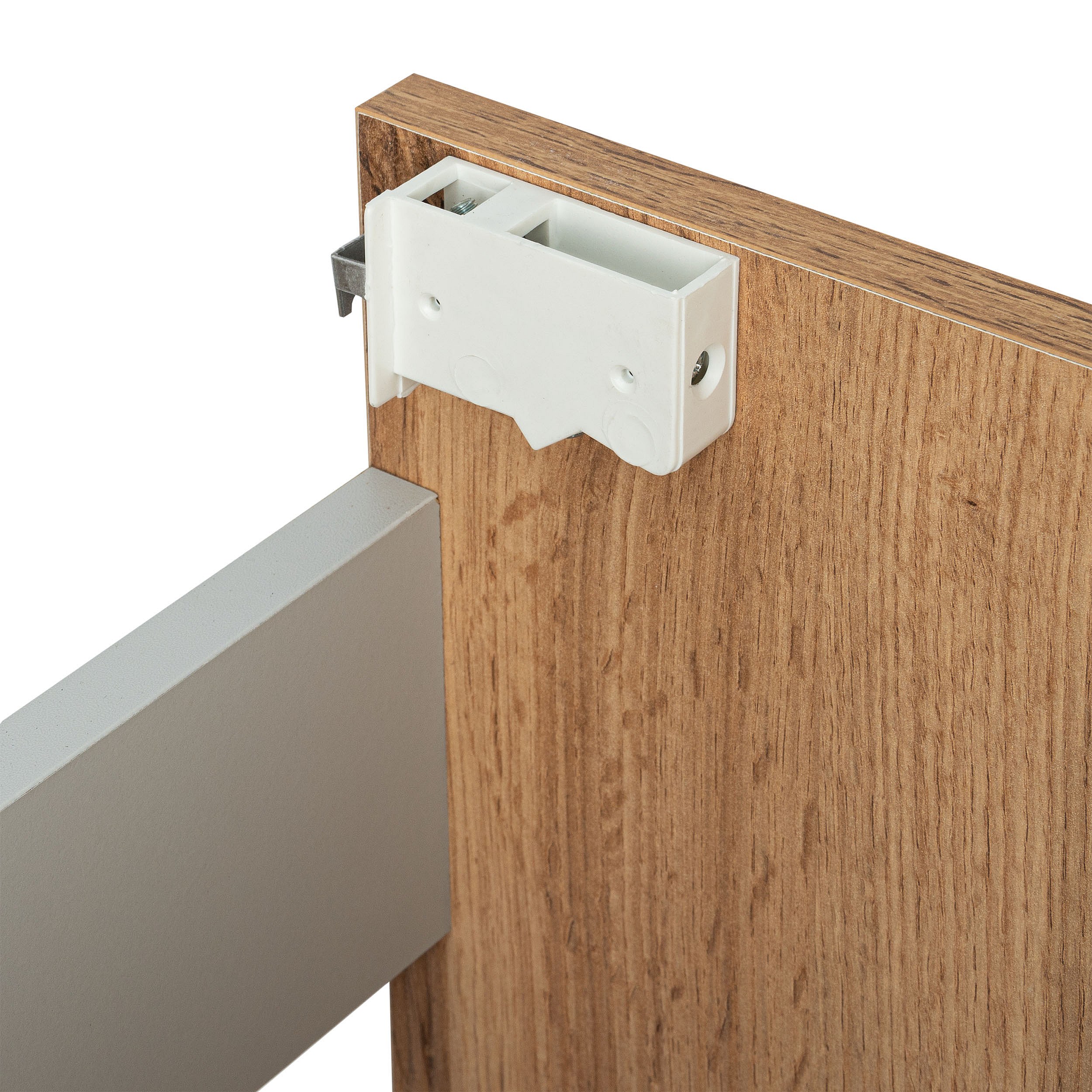 Wandmeubel met keramische wastafel, modern design, multiplex en wit eiken, 2 deuren en open plank (55x32x53 cm)