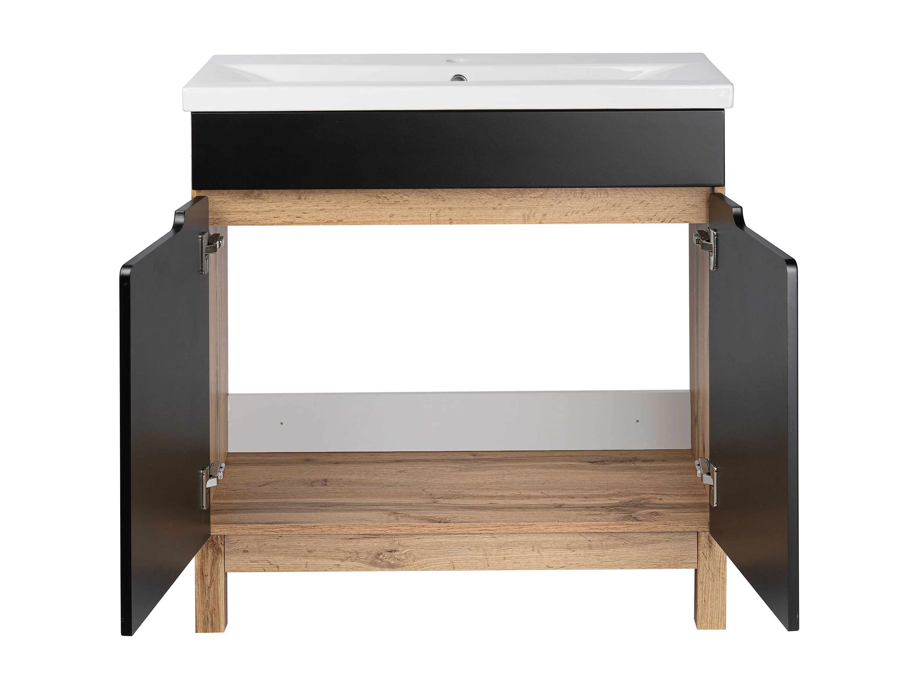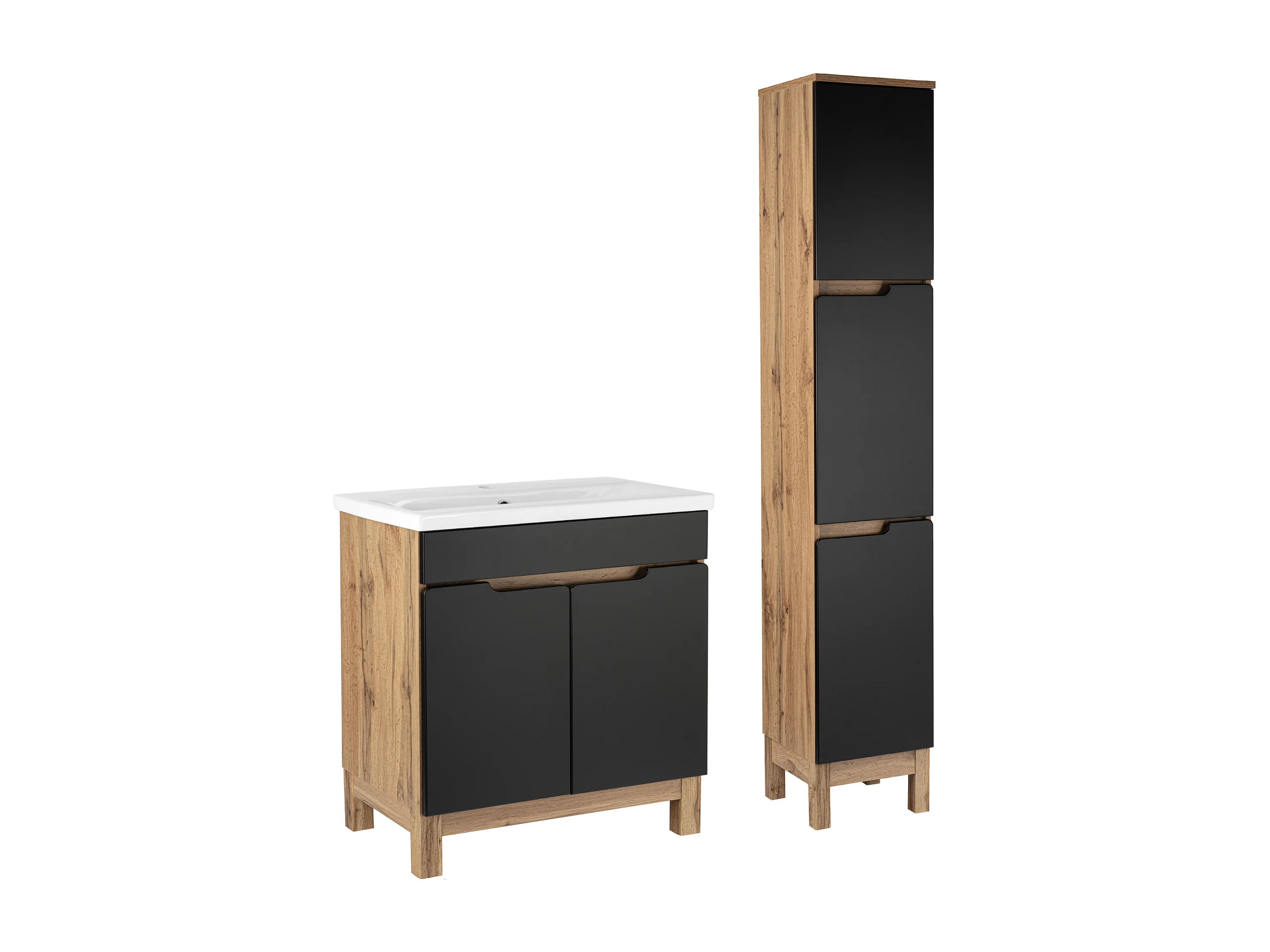 Badkamerset 80 cm Alma Kolom Eiken Wotan / Mat Zwart