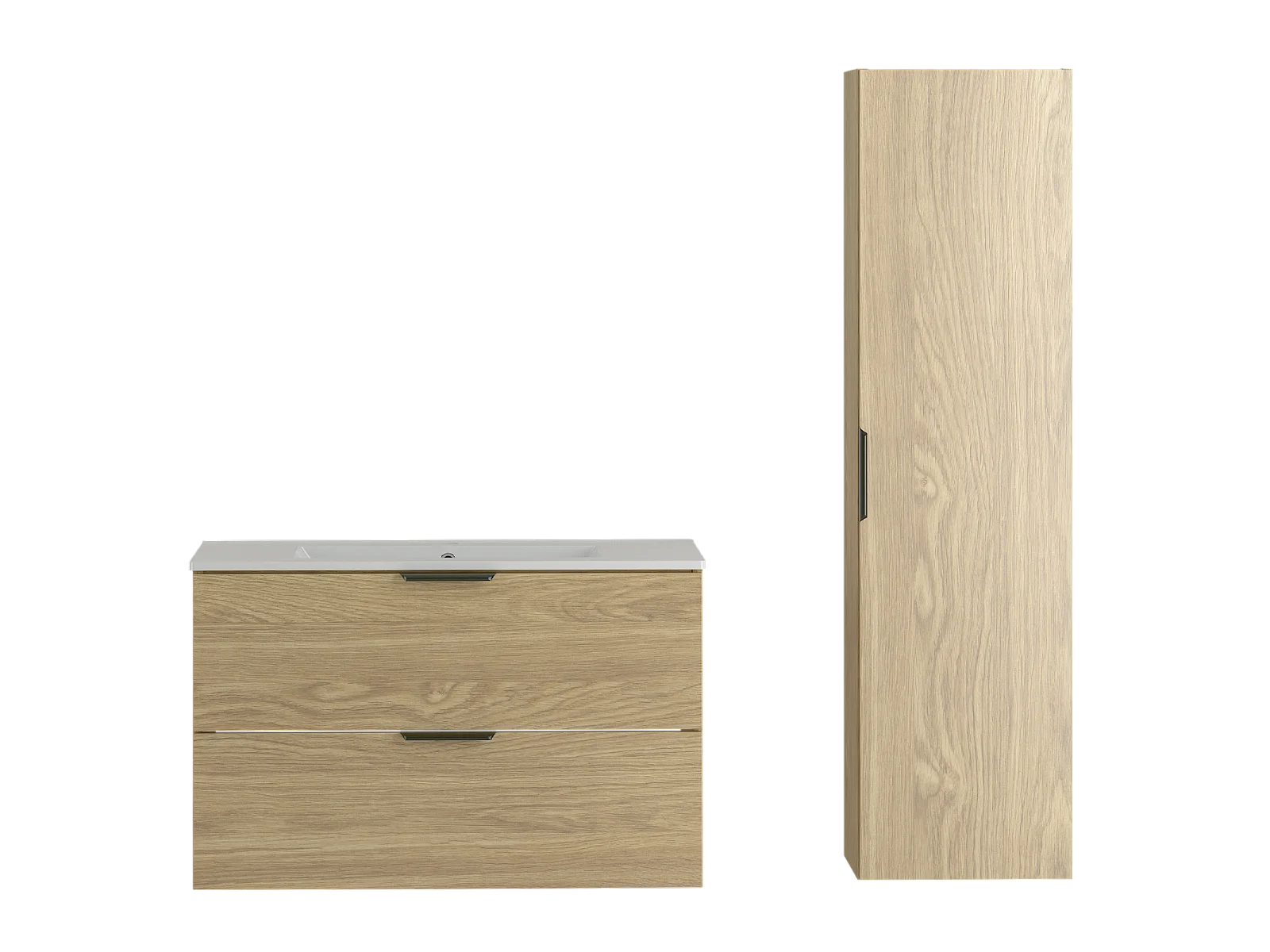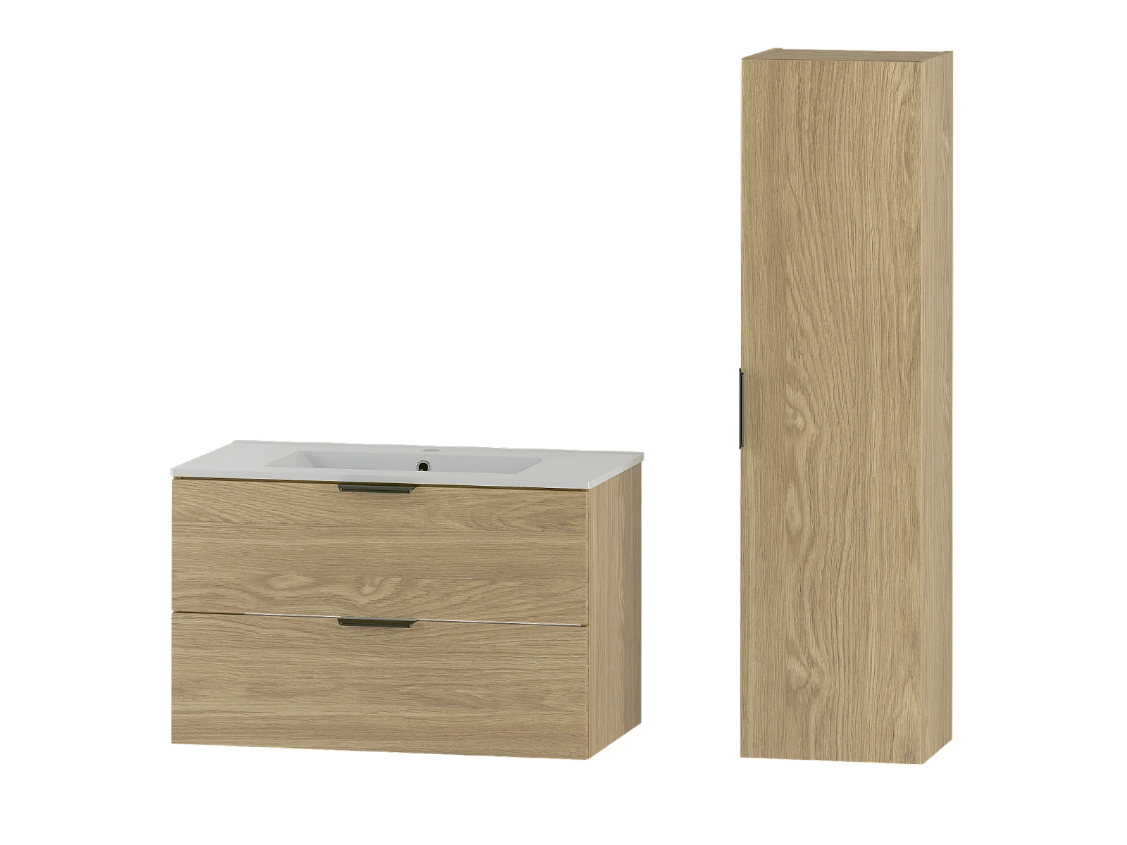 Badkamerset 80 cm Kast met wastafel Kolom Eiken geolied Pile