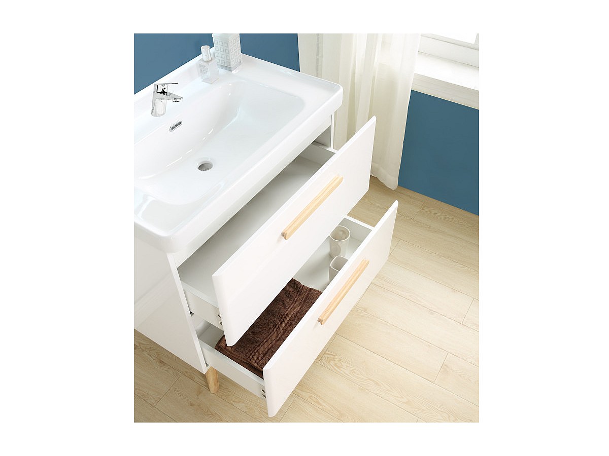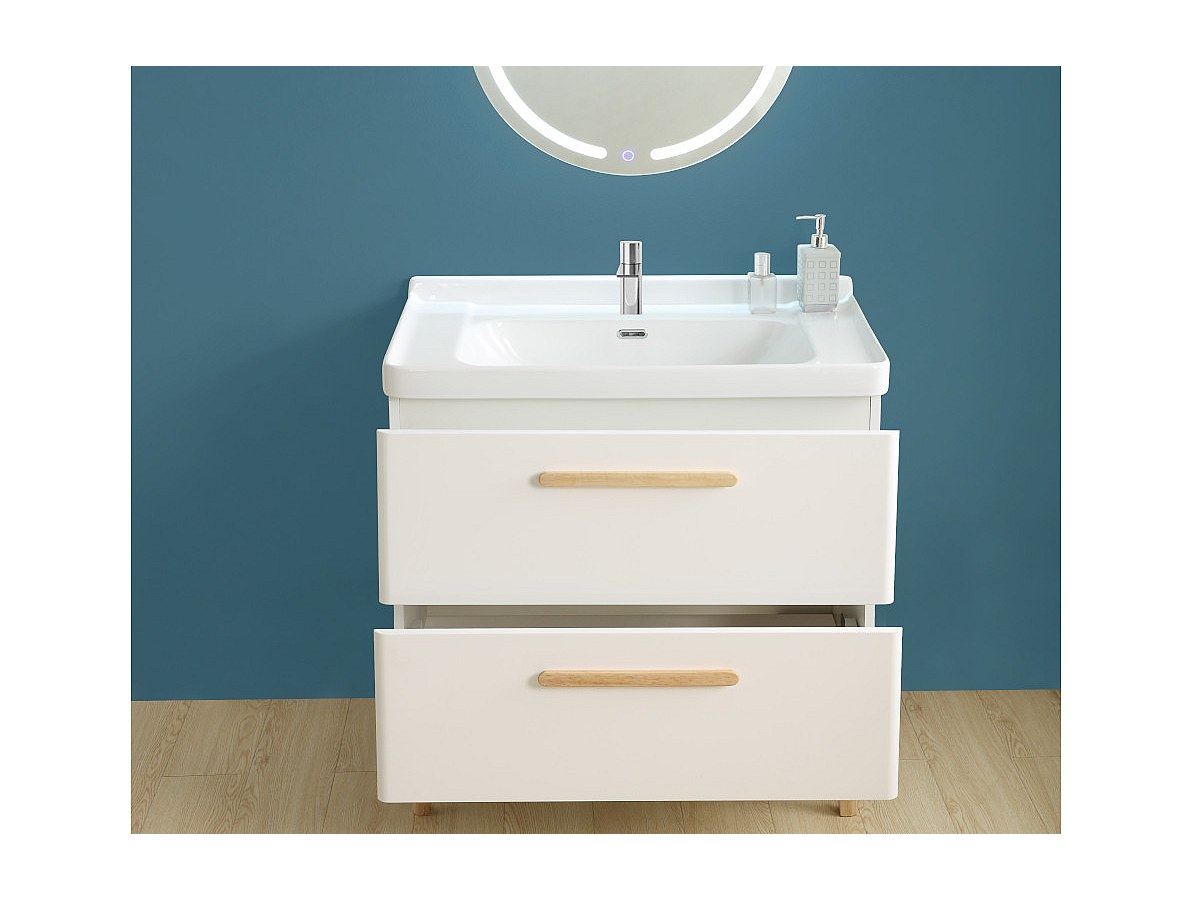 Badkamerset VATINE - Meubel met wastafel en spiegel - Witgelakt