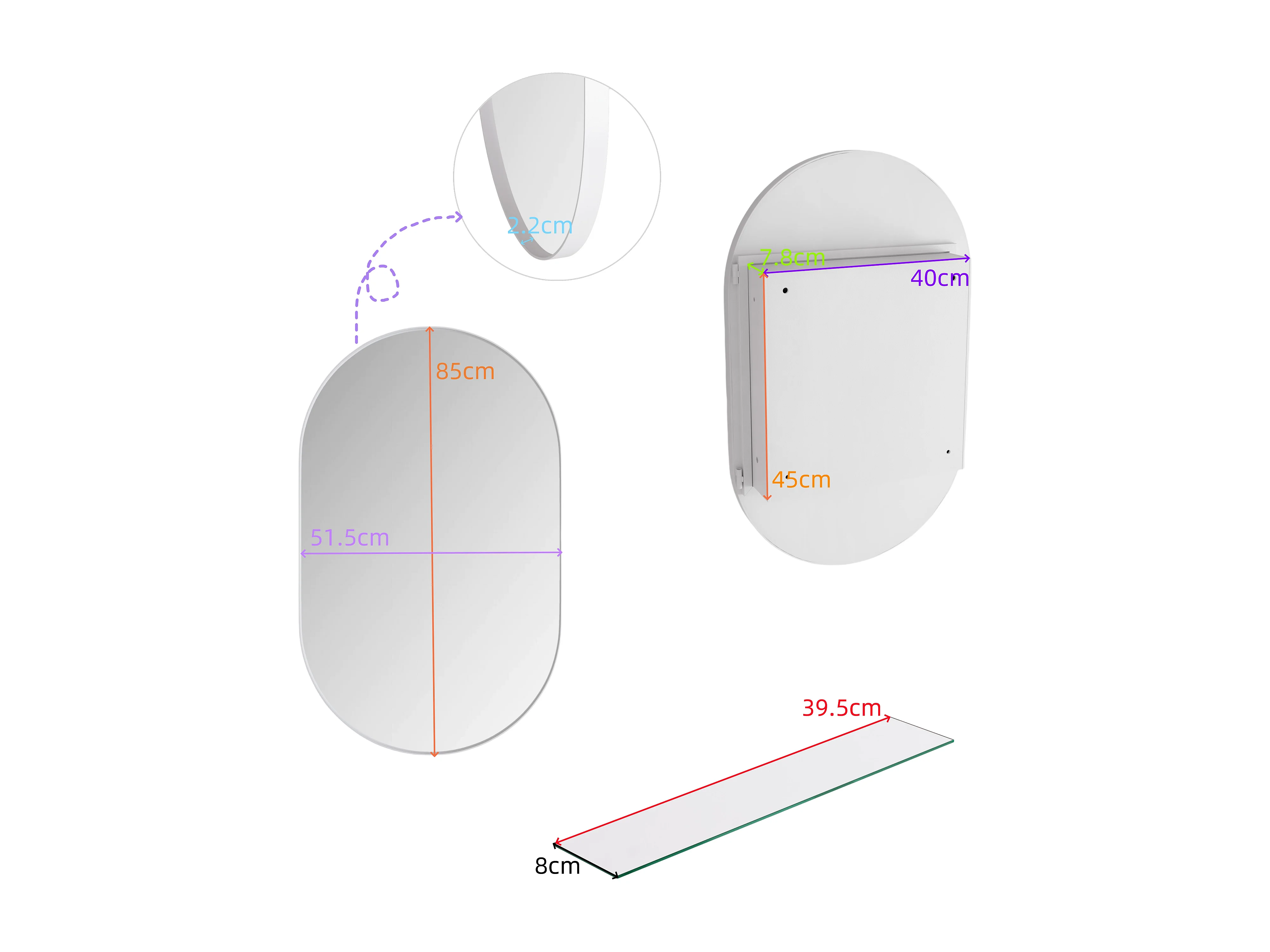 Badkamerspiegel met opbergkastje - Wit metalen frame