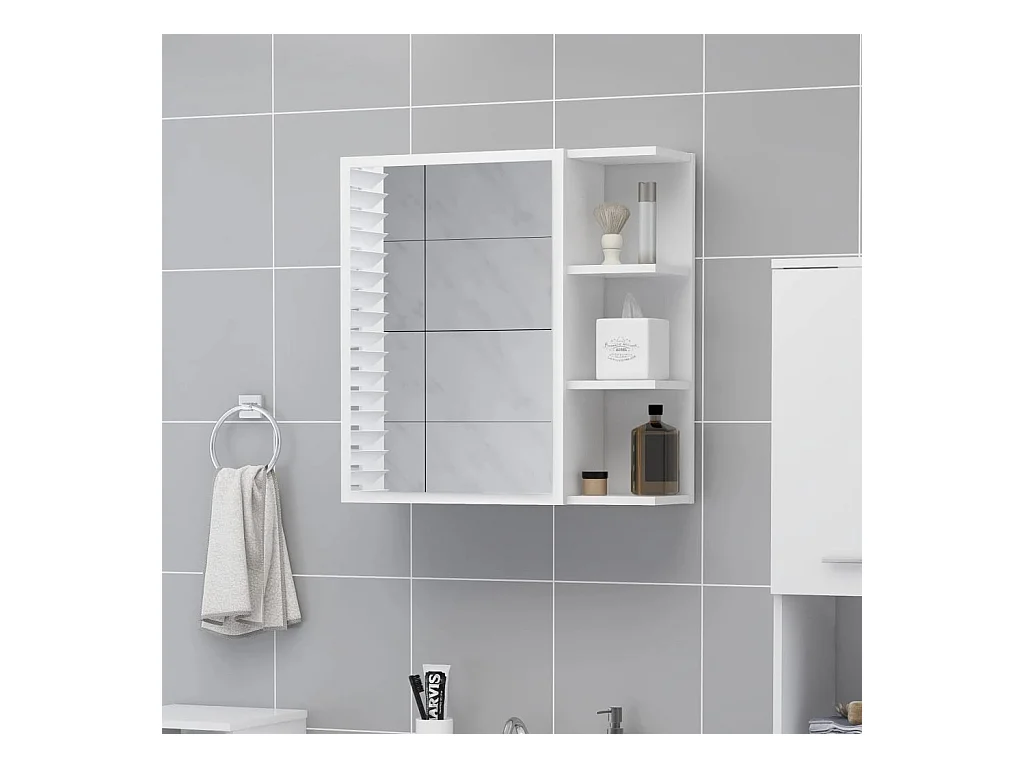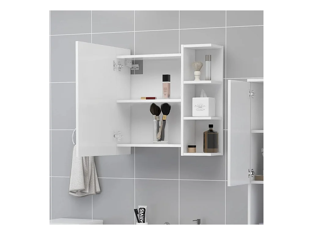 Badkamerkast met spiegel bewerkt hout hoogglans wit BE381014