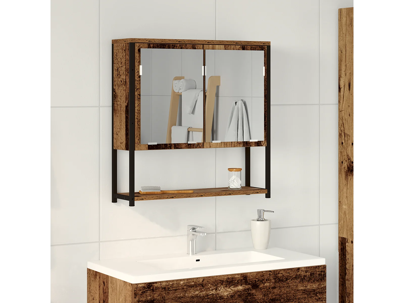 Badkamerspiegelkast in oud hout 60x16x60 cm in gereconstrueerd hout