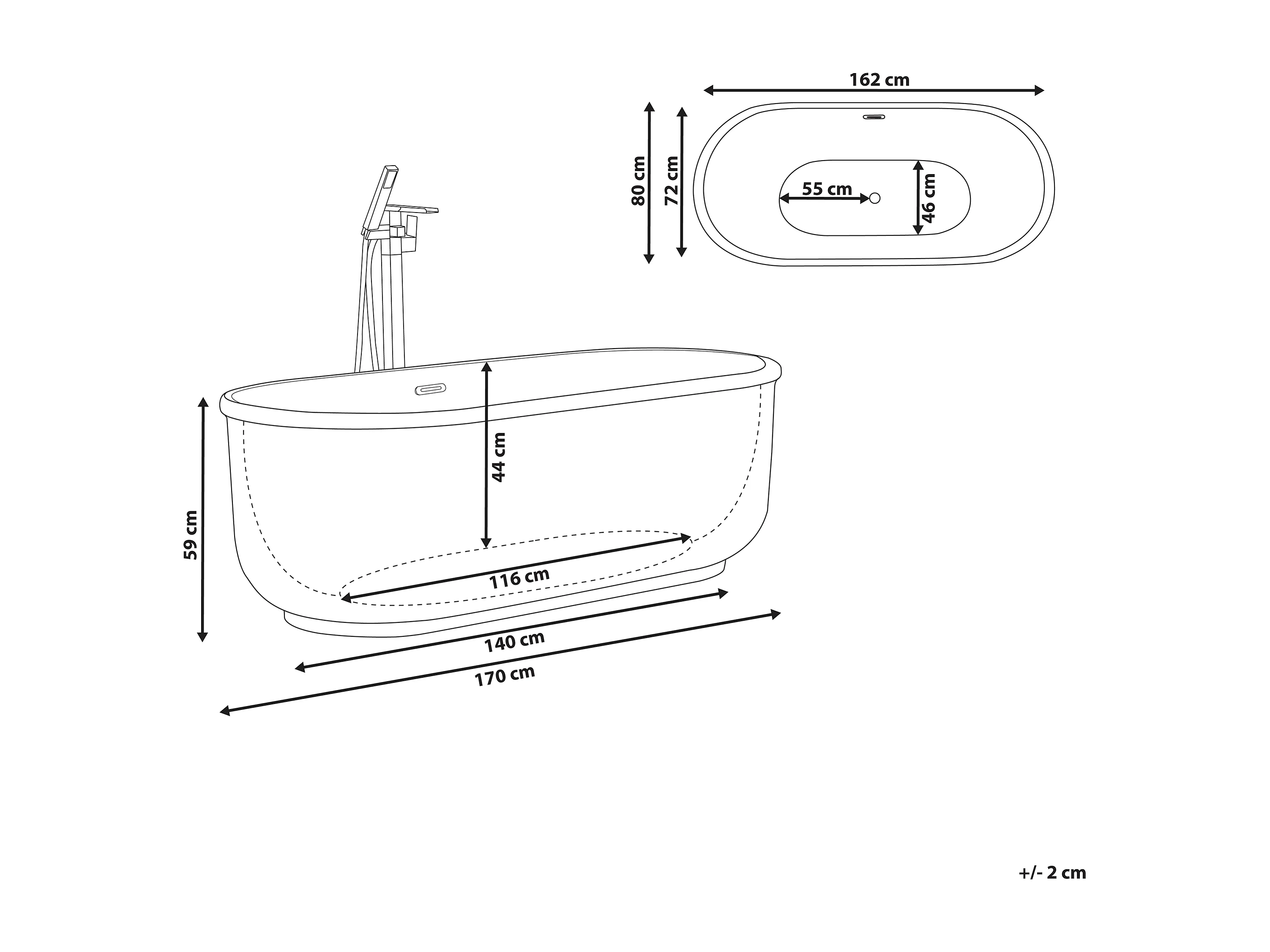 Vrijstaand bad PINEL 170 x 80 cm Goud
