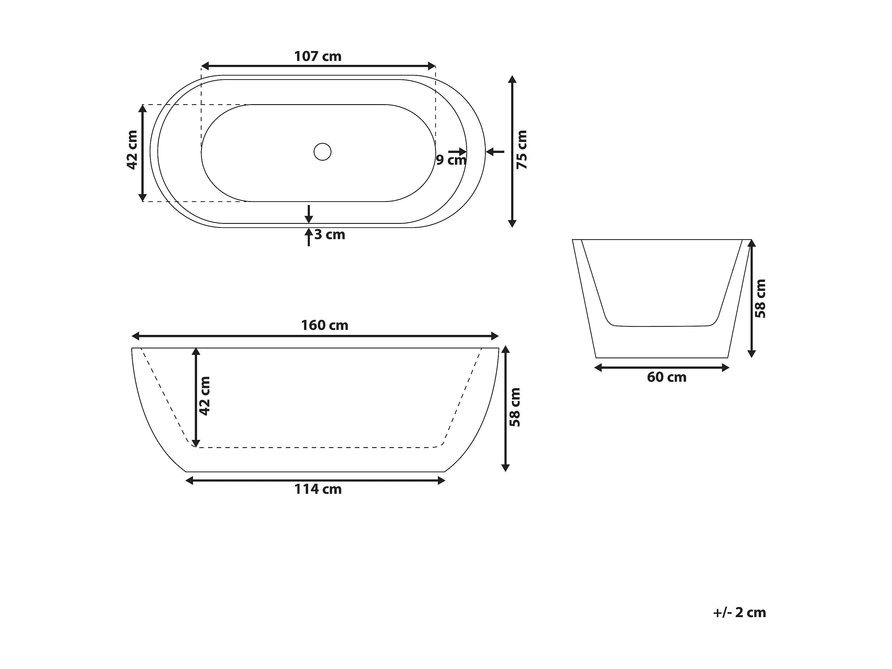 Vrijstaand bad NEVIS 160 x 75 cm Wit