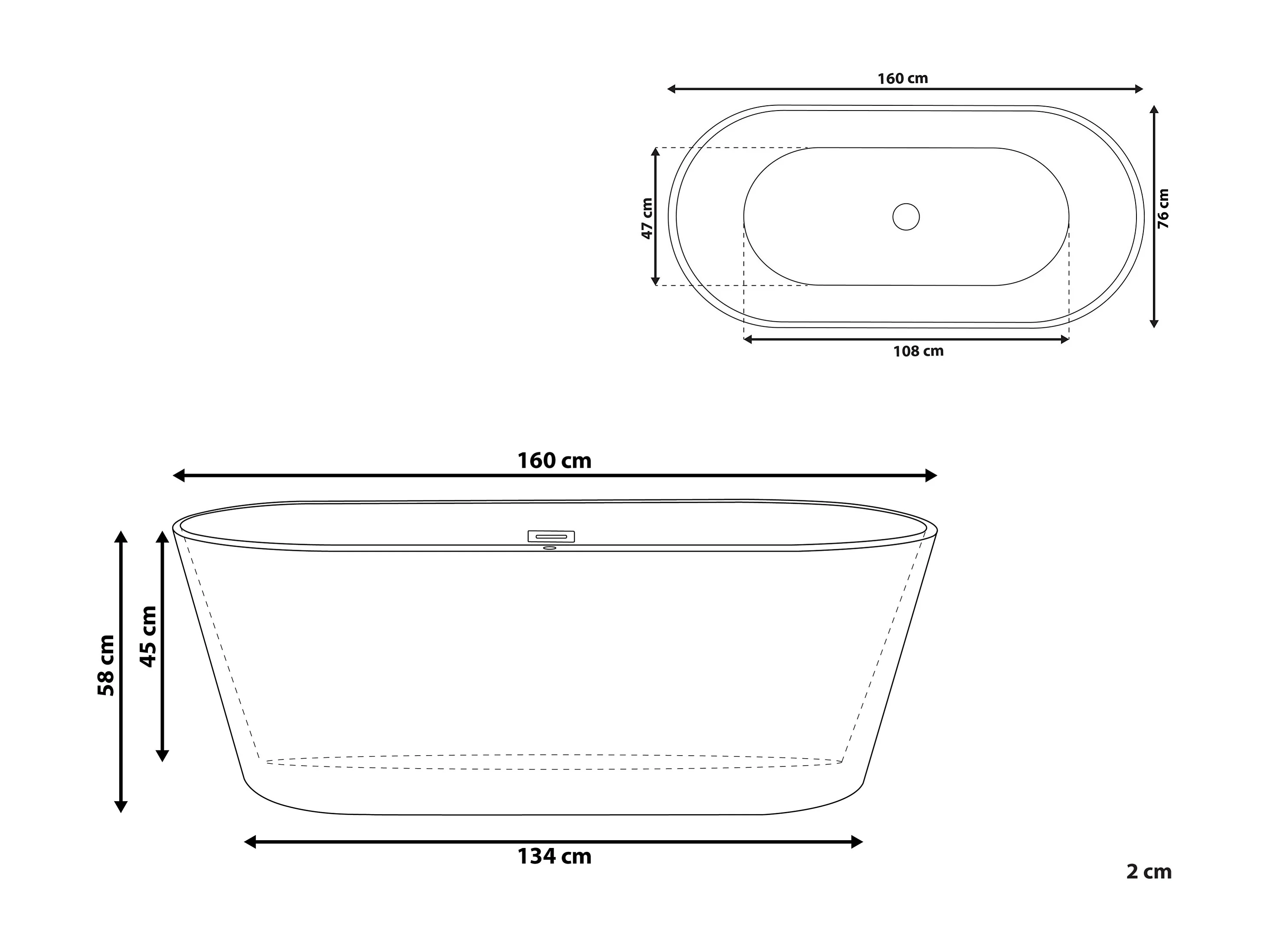 Vrijstaand bad HAVANA 160 x 80 cm Zwart/wit