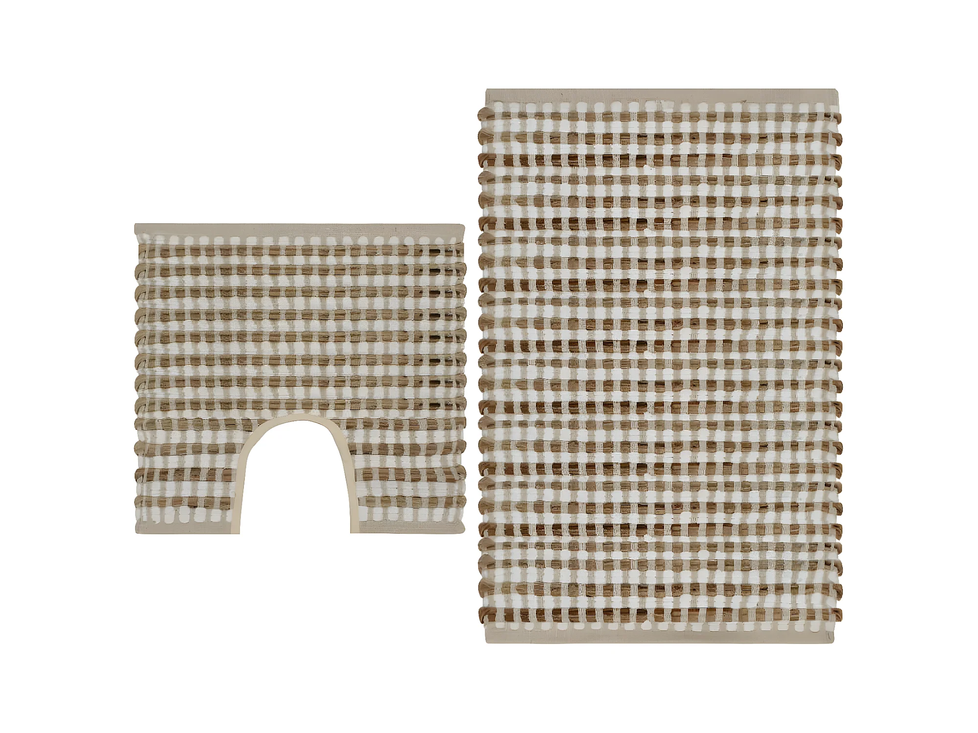 Badmattenset handgeweven jute en stof naturel en wit NL905249