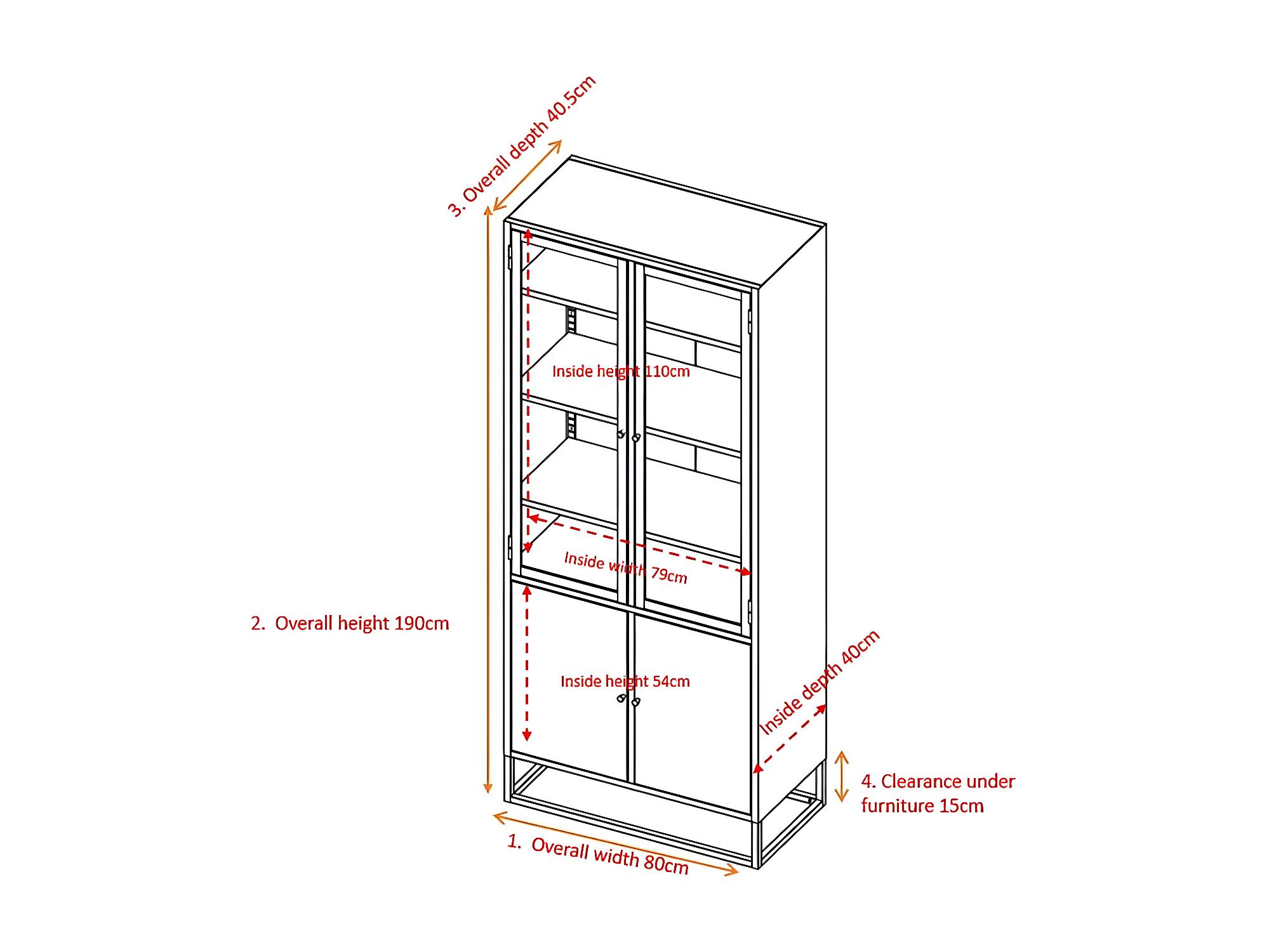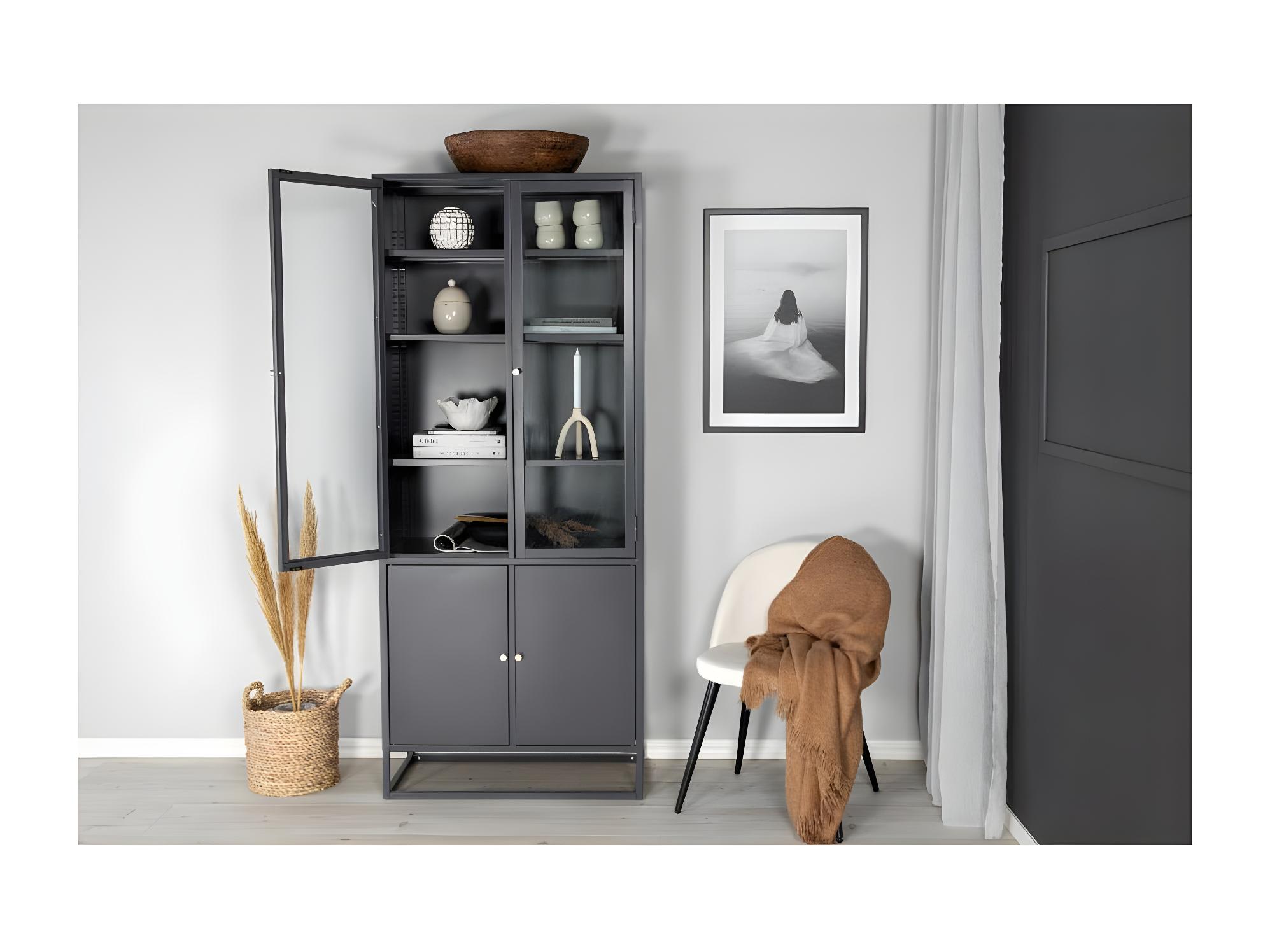 Bakal vitrinekast 4 glasdeuren, 5 planken, lichtgrijs.