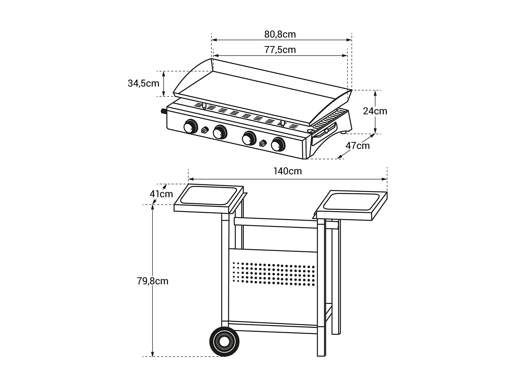Bakplaat op gas VALENCIA - 4 branders 10kW + wagen