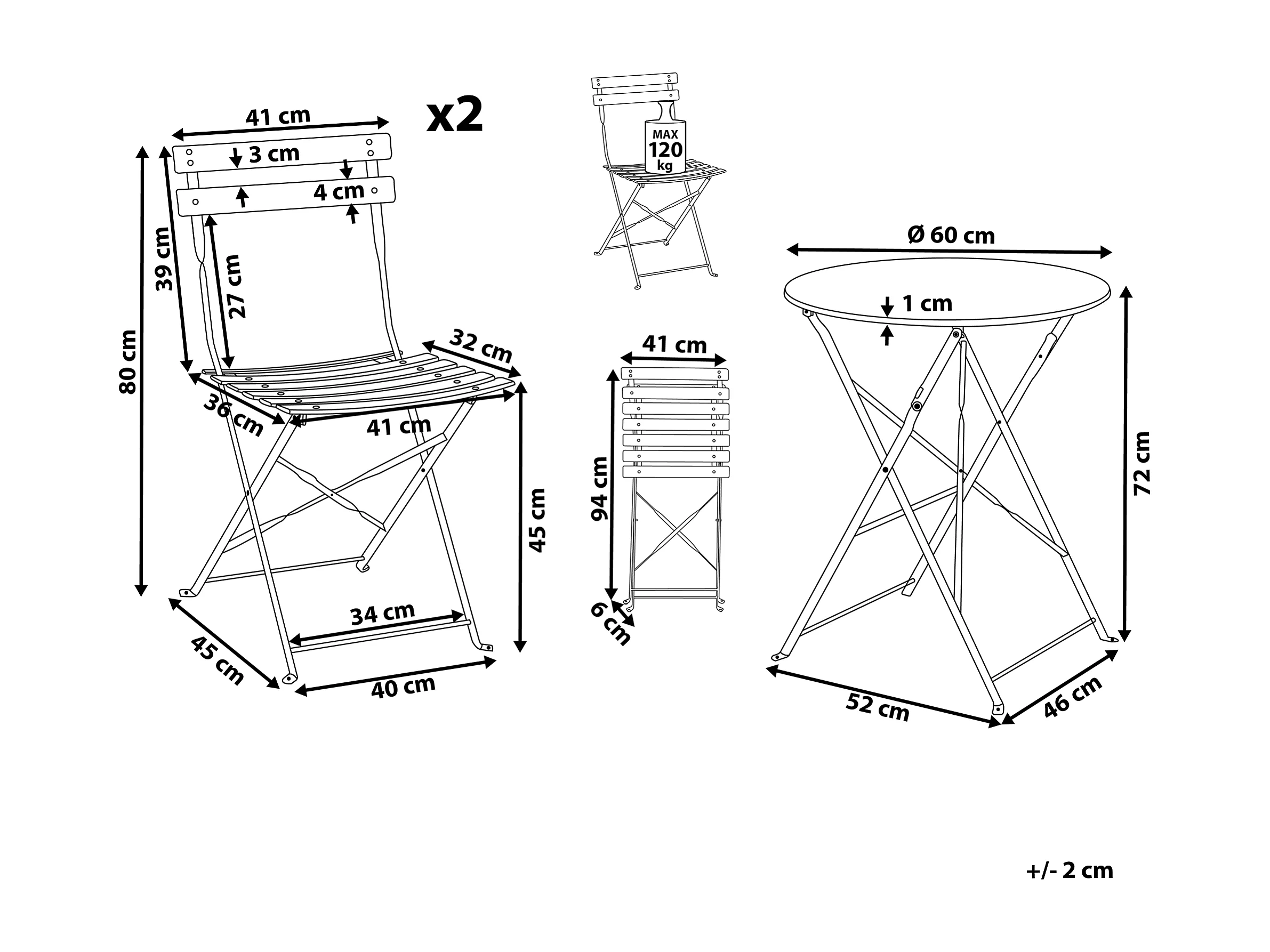 Set tuintafel en tuinstoelen 2 plaatsen
