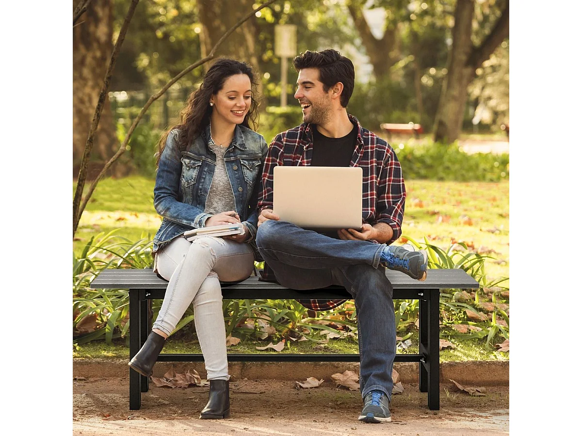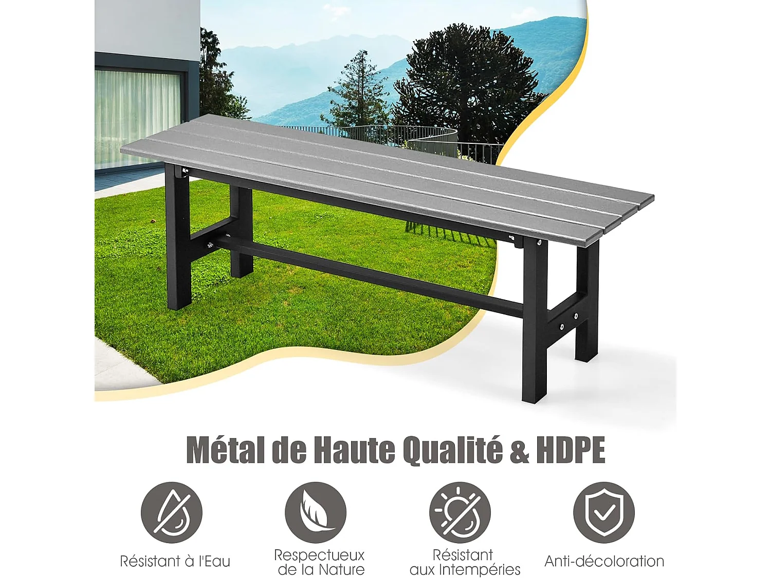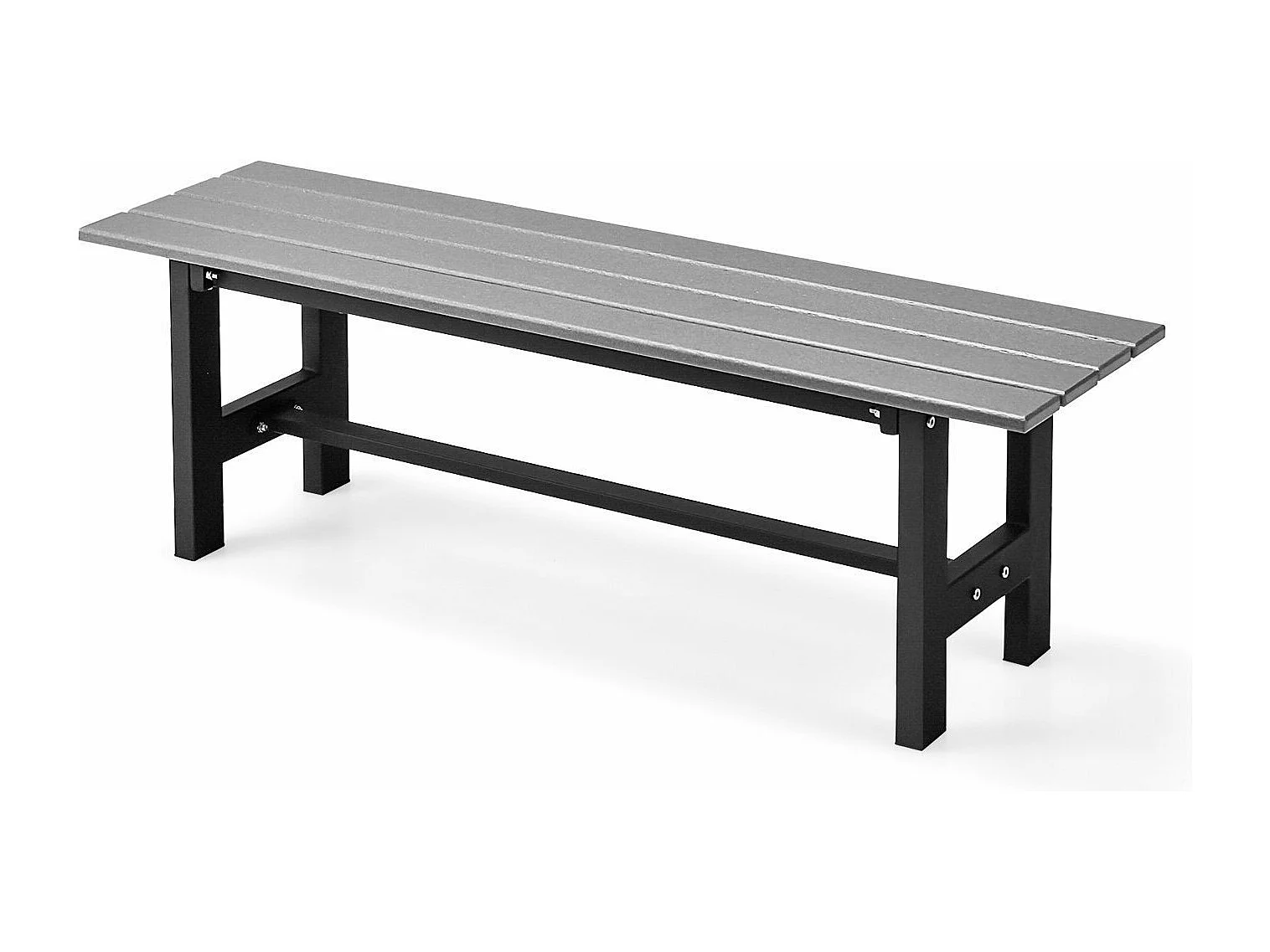 HDPE Tuinbank Metalen Frame voor 2 Personen, Rugloze Patiobank met Latten Zitting 120 x 36 x 40,5 cm, Belasting 300KG, voor Tuin Terras Binnenplaats (Grijs)