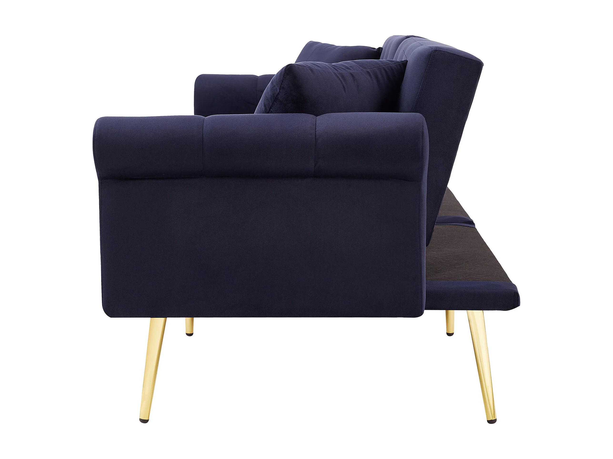 Bank 147x85x41cm Verstelbare dubbele rugleuning 3 standen Fluwelen stof Hoge dichtheid schuim Gouden metalen poten Antiekblauw Woonkamer