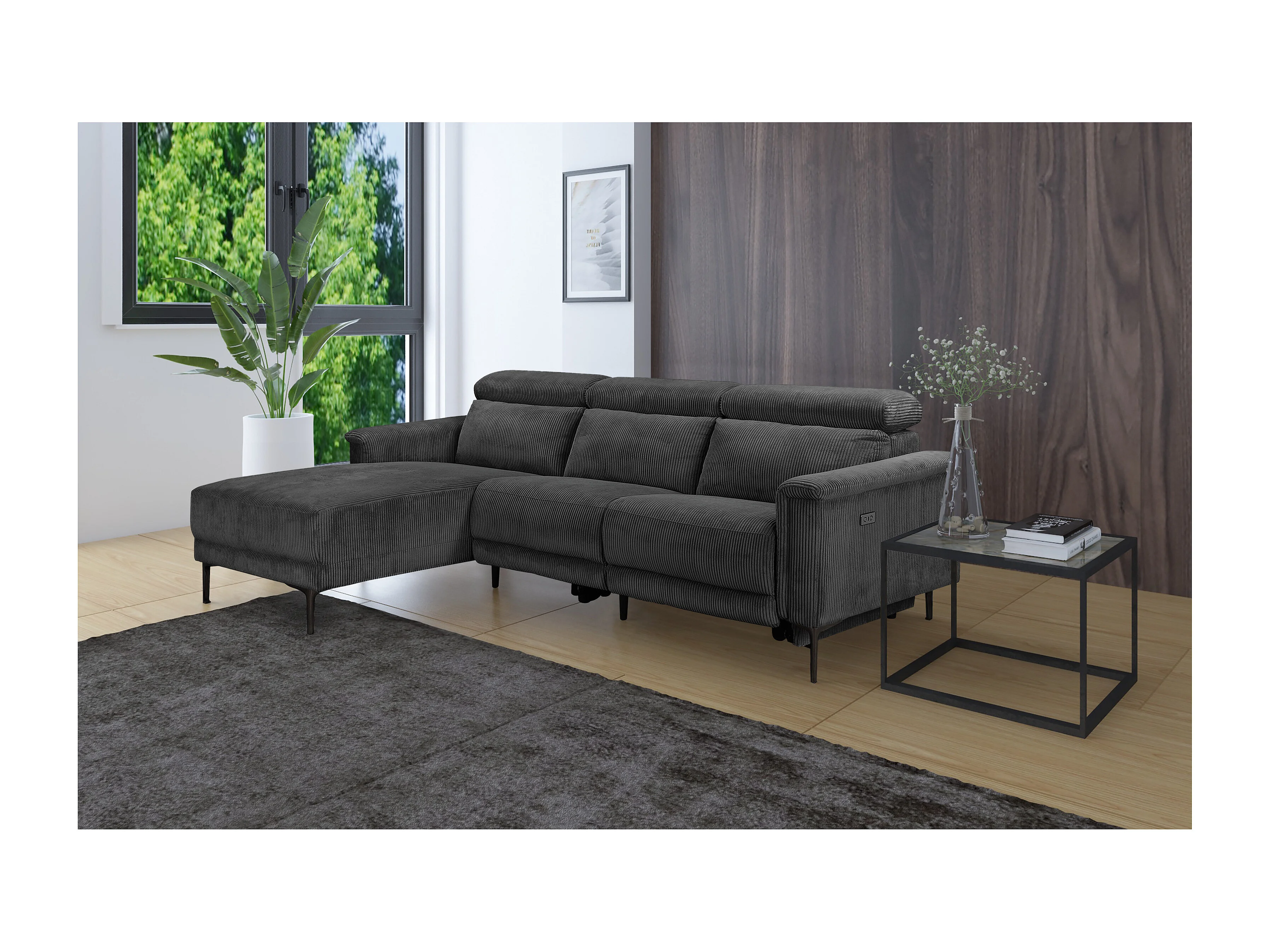 Hoekbank 3-zits met handmatige functie in stof antraciet