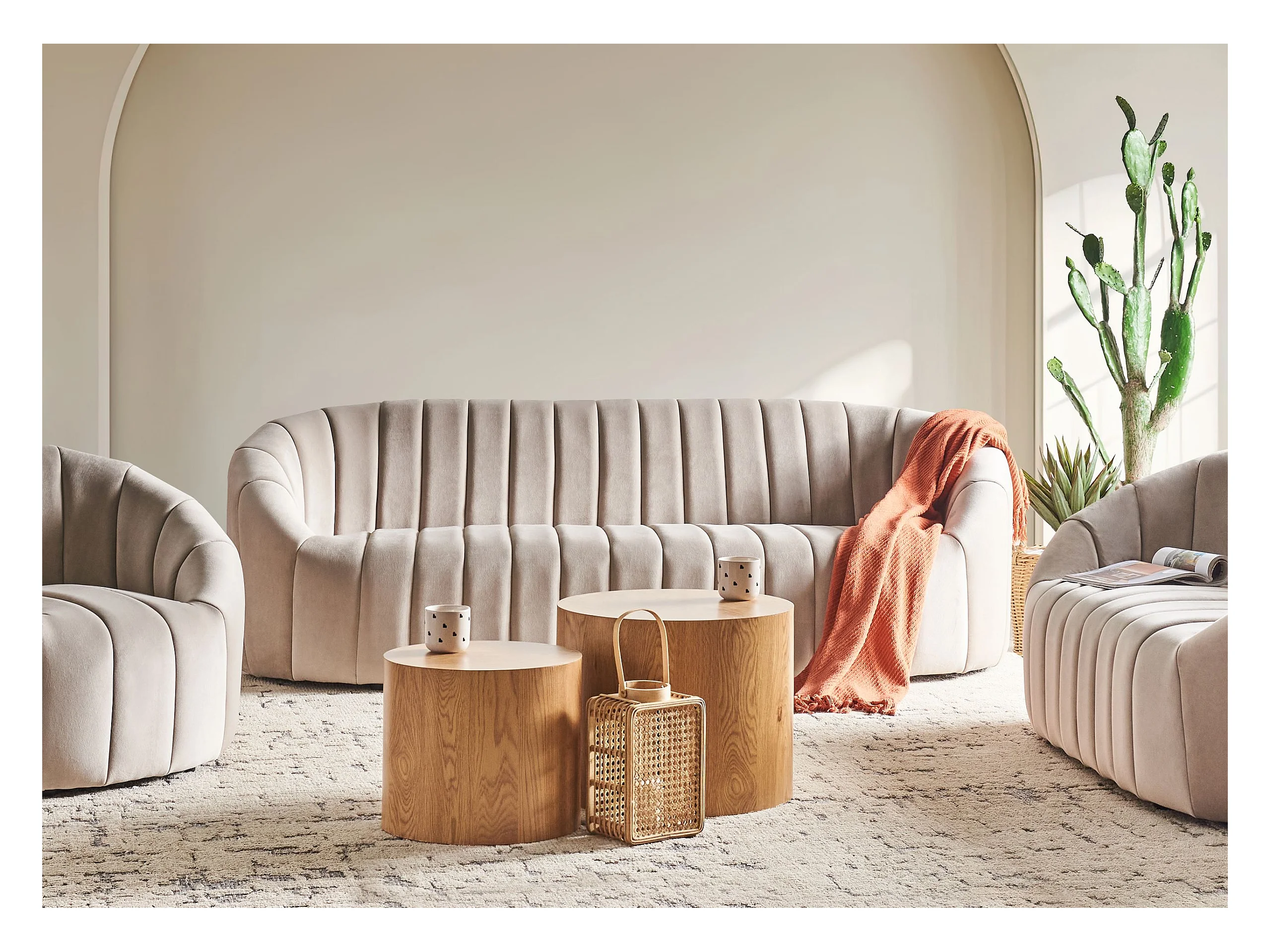 Teddy stoffen fauteuil met kussen - massief houten poten - beige