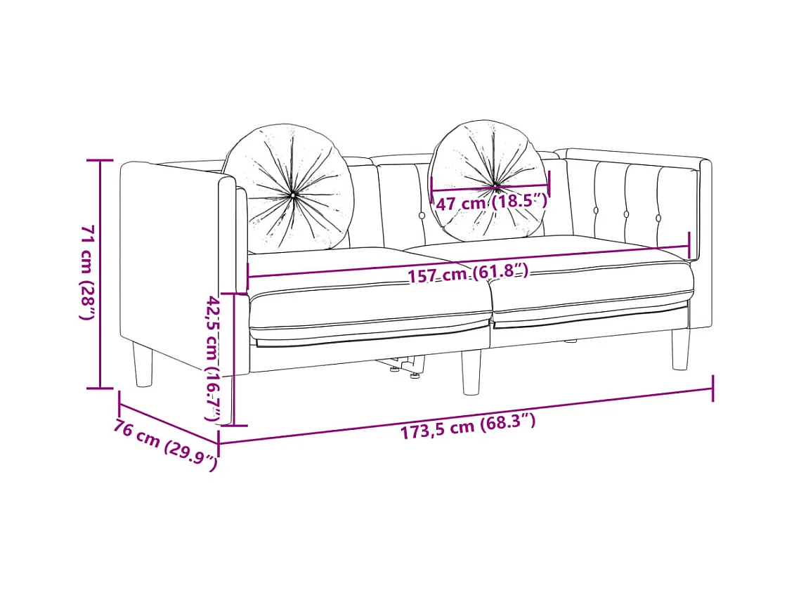 Tweezitsbank met sierkussens 120 cm fluweel bruin