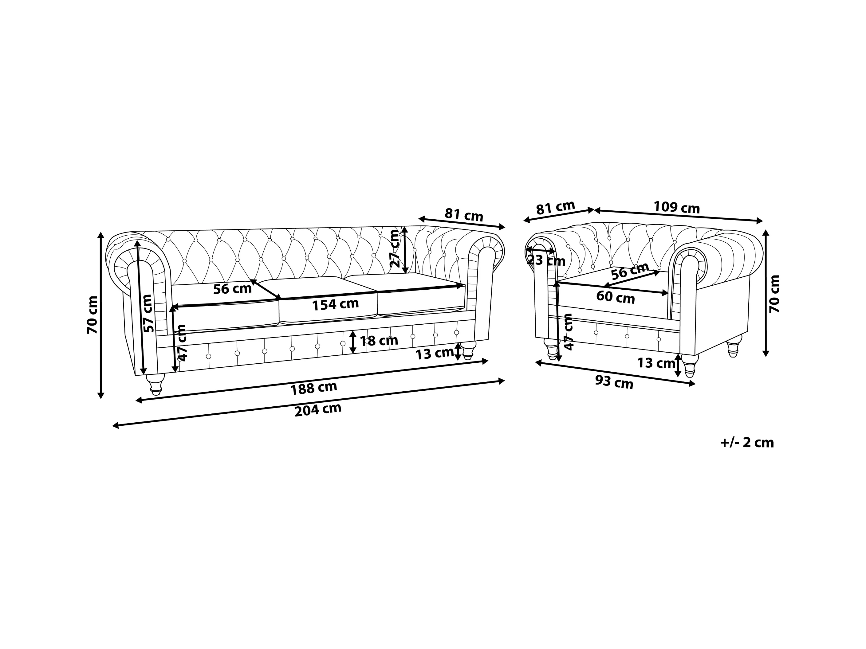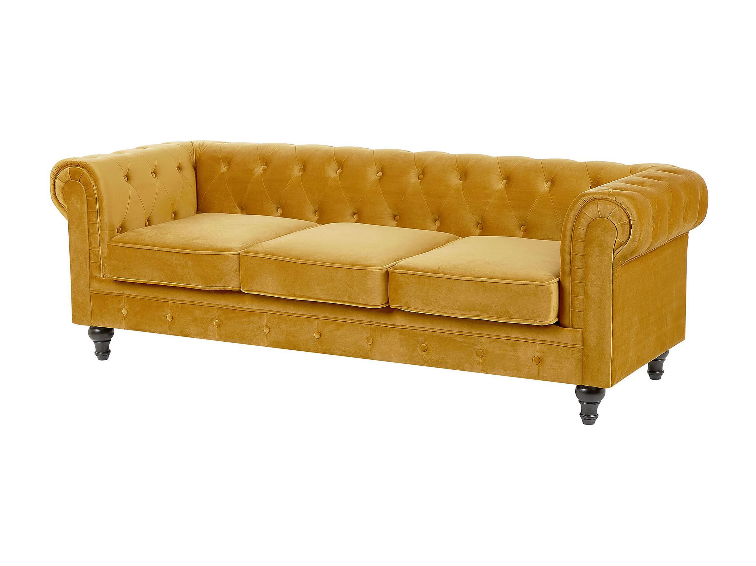 Bankenset CHESTERFIELD Fluweel Mosterdgeel 4-zitter