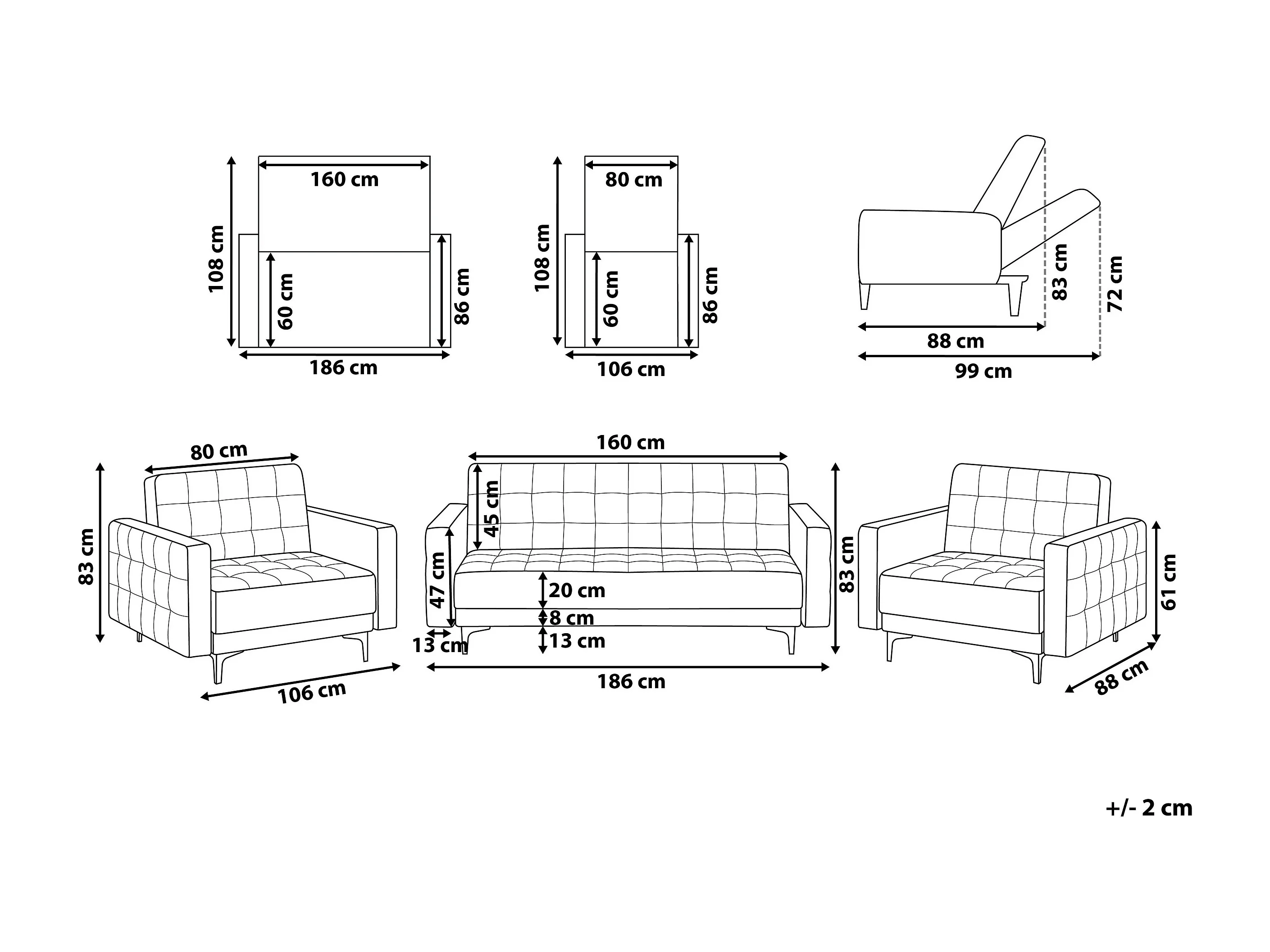 Bankenset ABERDEEN Fluweel Zwart 5-zitter
