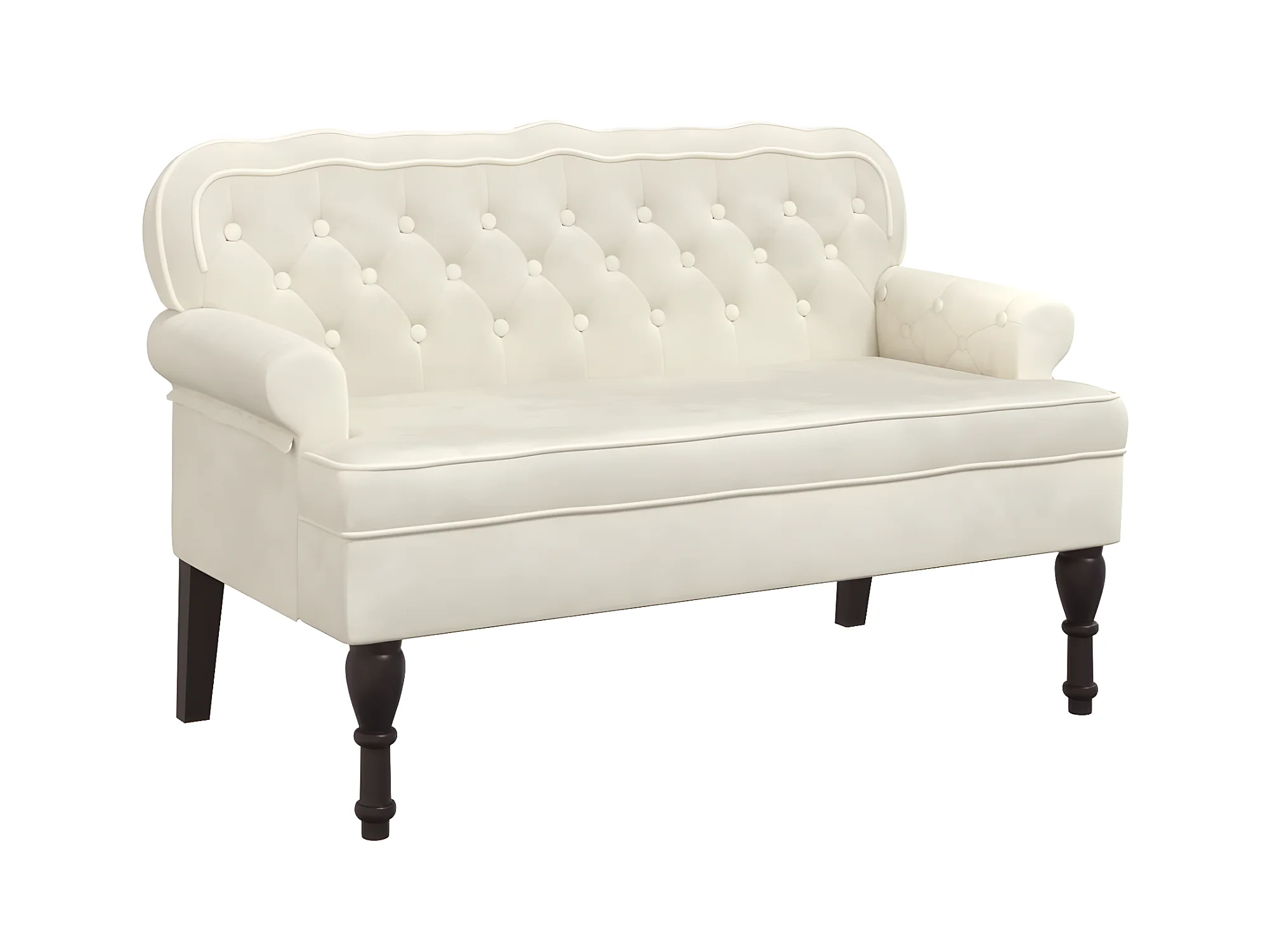Bankje met rugleuning 119,5x64,5x75 cm fluweel crèmekleurig BE856852