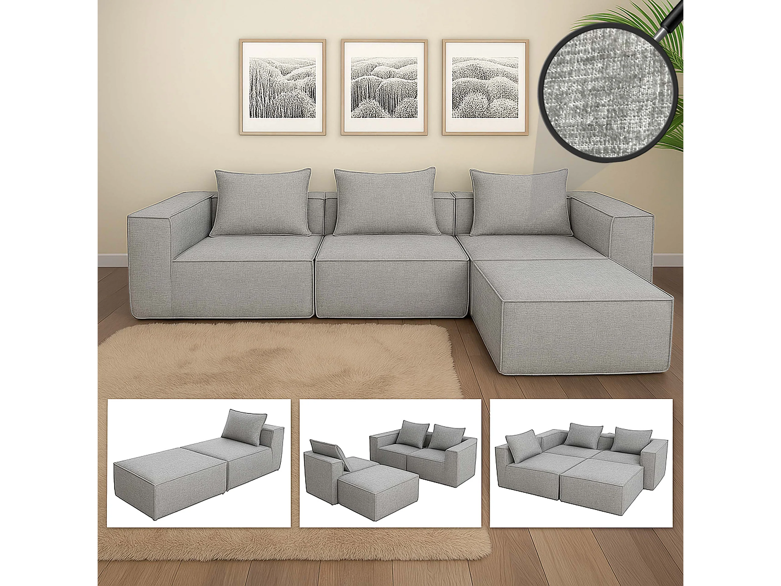 Bankstel MCW-O54 (4-delig), lichtgrijs