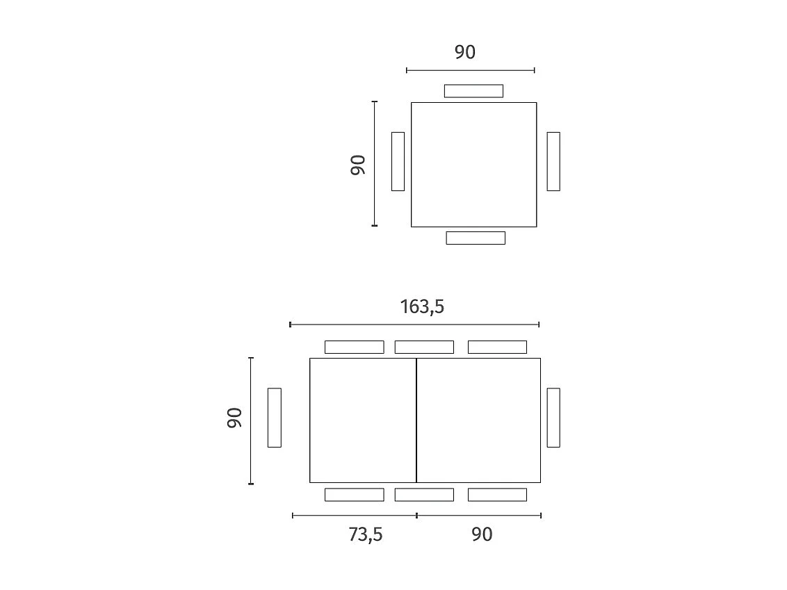Banner - Uitschuifbare tafel (90/163,5 x 90 cm) in wit gehard glas