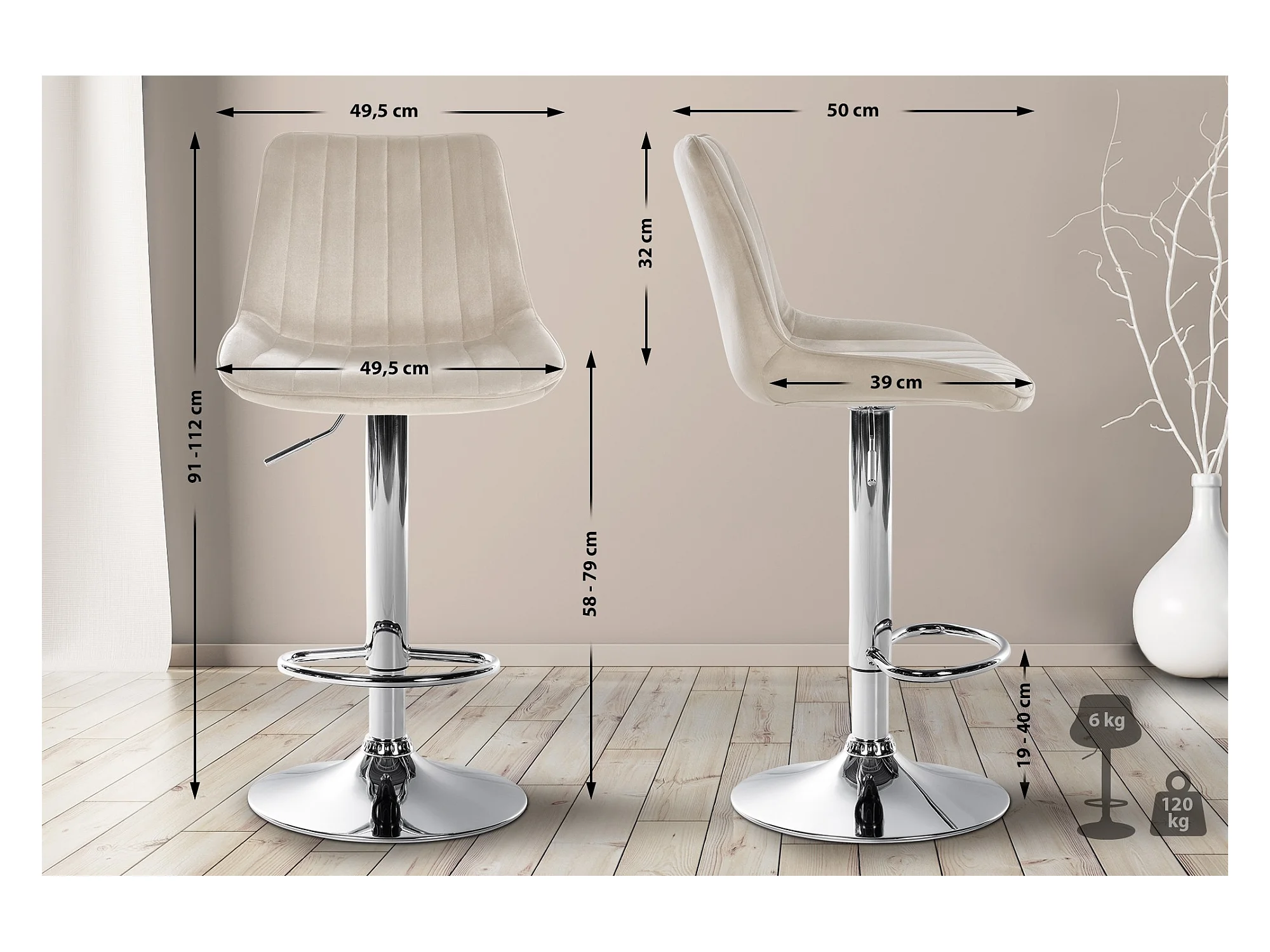 Barkruk - Fluweel & chroom - creme - Toni