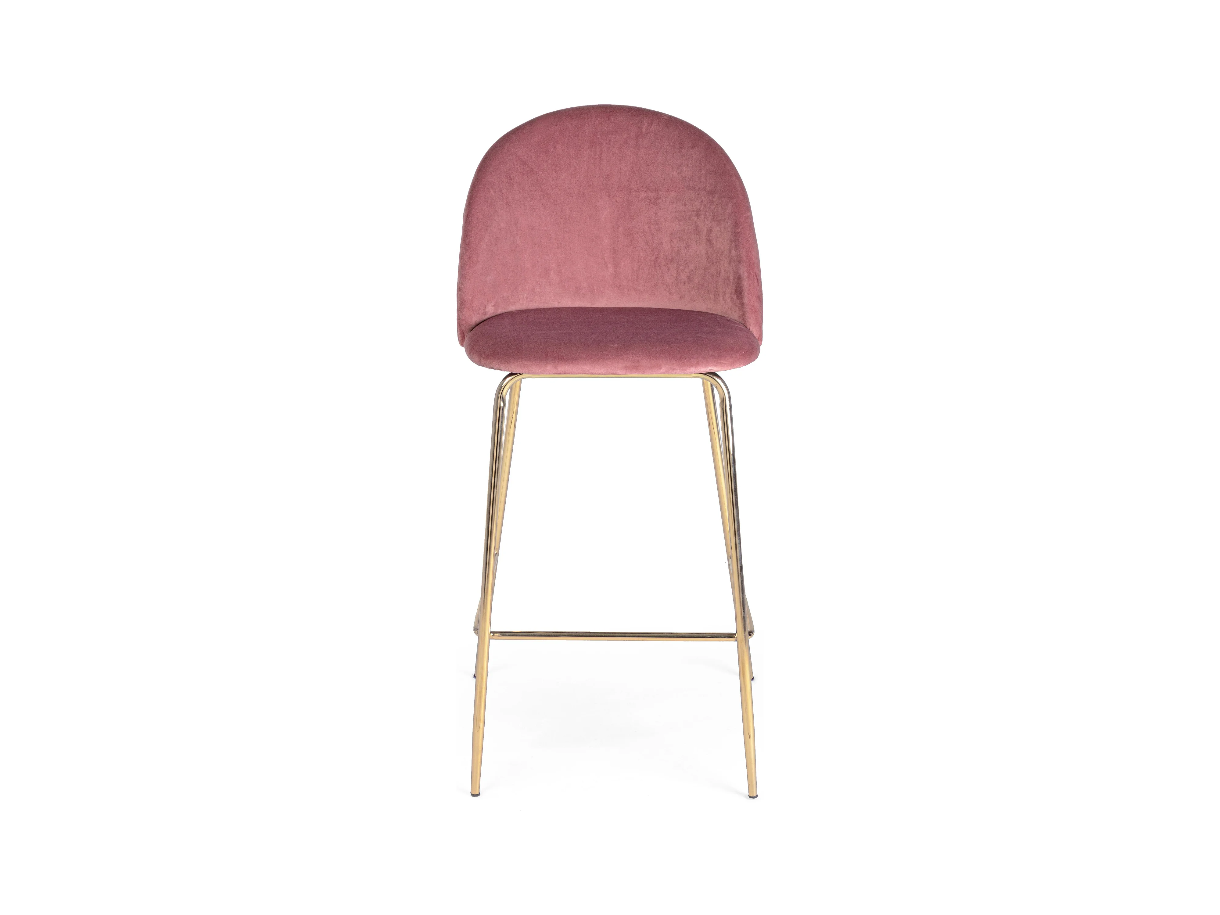 Barkruk in roze fluweel en Cam stalen poten - Set van 2