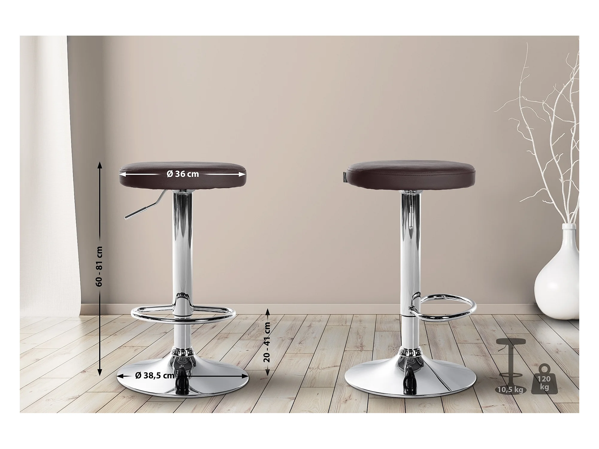 Barkruk - Kunstleer & chroom - bruin - Ponte