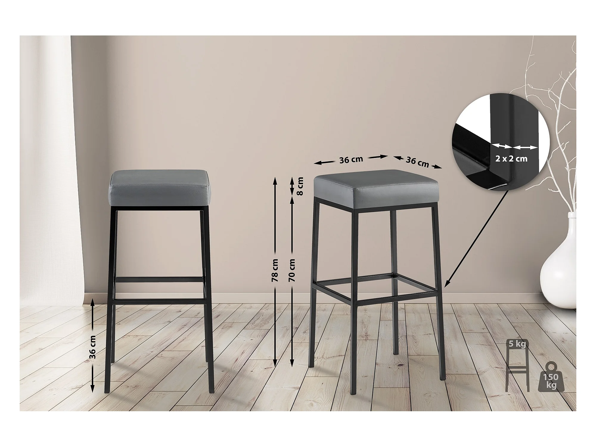 Set van 2 Barkruk - Kunstleer & zwart - grijs - Montreal 80